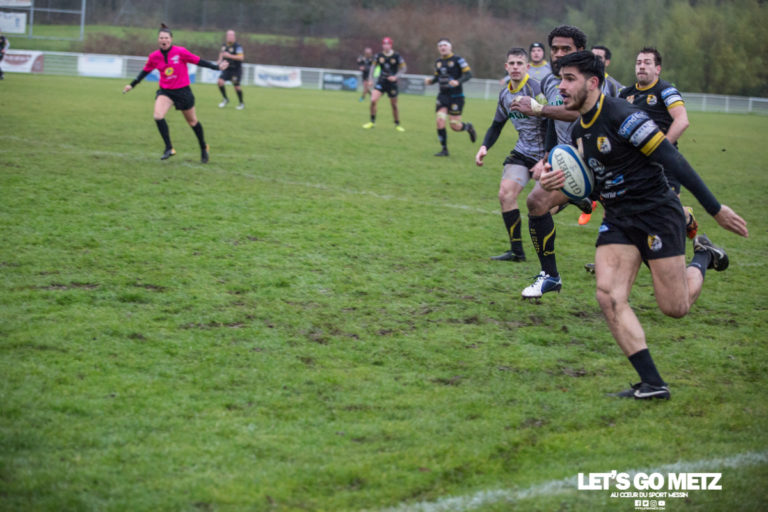 458 Ce Dimanche, les joueurs du Rugby Club Metz Moselle recevaient sur leur terrain de La Grange aux Bois l’équipe de Chagny. Ce véritable choc de la poule 4 opposait donc les Messins leaders de leur poule à de solides seconds venus jouer la victoire. Toujours premiers de leur poule et forts d’une série de 5 victoires les Messins disposent de toutes les composantes pour aborder ce match sereinement. Seulement face à eux se présente aujourd’hui une équipe Chagnotine très solide et ayant su déjouer de nombreux pièges depuis le début de saison. Voici la composition Messine pour cette rencontre : Au coup d’envoi du match les joueurs sont déjà trempés, en effet la météo n’a pas su se montrer au niveau de l’événement et nous risquons d’assister à une rencontre pénible pour les acteurs. Malgré cela les débats démarrent sur les chapeaux de roue avec un score porté à 7 – 3 en une dizaine de minutes. Les Messins prennent rapidement le match à leur compte en inscrivant un deuxième essai dès la quinzième minute, sur une poussée collective. La marque est transformée par Guerimand. 14 – 3. Les conditions météorologique favorisent les erreurs et le jeu ne progresse pas beaucoup. Malgré tout les joueurs de Chagny occupent le terrain et progressent mètre après mètre. Les tentatives de dégagement Messines n’aboutissent pas et les Chagnotins parviennent à force de détermination à aplatir le ballon dans l’en but à la 24ème minute pour revenir dans la partie. Ce n’est pas transformé et le score reste à 14 – 8. Piqués au vif, les Messins s’installent dans le camp adverse dès la remise en jeu et percent rapidement une défense désorganisée. Au bout, un nouvel essai transformé portant le score à 21 – 8. Quelques minutes plus tard, à peine le ballon récupéré, les hommes en noir partent en contre attaque mais l’offensive est stoppée à quelques mètres de la ligne. Les joueurs de Chagny serrent les rangs et laissent passer la tempête en guettant une opportunité de dégagement, ils la trouvent alors que la 27ème minute de jeu se profile. C’est à présent les Messins qui font le dos rond, avec une défense qui semble précipitée mais la tendance finit par s’inverser, sur une remontée de terrain aboutissant avec brio sur un essai de Raynal à la 34ème minute. La transformation ne passe pas : 26 – 8. Certains joueurs Messins se verraient bien emballer le match à l’approche de la mi temps, à l’image d’une combinaison bien trouvée sur l’aile et qui permet quelques secondes plus tard une course poursuite aussi prometteuse qu’infructueuse sous les cris des supporters en tribune. Les Chagnotins remettent la main sur le ballon suite à une faute Messine mais ne parviennent pas à arranger la marque avant la mi temps. Score à la pause : 26 – 8 La seconde mi temps reprend fort et les joueurs de Chagny refont doucement leur retard au pied : 26 – 14. Malgré tout l’intensité baisse rapidement, tout comme la luminosité et les erreurs se multiplient des deux côtés : hors jeu, en avant, jeu au sol, plaquages non réglementaires… Les séquences de jeu sont hachées et l’arbitre n’aide pas à arranger cela avec des retours à des fautes peu évidentes, des coups de sifflets tardifs mais aussi des décisions discutables qui ne manquent pas d’échauffer les esprits en tribune, autant en faveur d’une équipe que de l’autre. Les deux équipes se contraignent à un jeu creux, entre mêlées à répétition et coups de pieds infructueux, l’horloge tourne, l’obscurité progresse et la bruine continue. Rien ne va dans le sens du beau jeu aujourd’hui mais nous avons droit à un sursaut d’adrénaline alors qu’un joueur de Chagny s’échappe dans l’en but Messin sur une offensive éclair… Mais son essai est finalement refusé dans des conditions troubles. Enfin le dernier sursaut se produit lorsqu’un Messin réussit une interception magistrale pour foncer dans l’en but bourguignon à la 75ème minute. Non suivi, il en profite même pour traîner sous les poteaux et grappiller quelques précieuses secondes avant qu’un joueur de Chagny ne vienne le forcer à aplatir. Une fois transformé, la marque est portée à 33 – 14. Suite à cela, les débats s’éternisent mais le score n’évolue plus. L’obscurité et la pluie sont venus à bout du beau jeu et permettent encore deux mêlées sans âme avant le dernier coup de sifflet. Le RC Metz a tenu son rang et le RC Chagny se fait distancer au classement. Il s’agissait du dernier match de l’année pour les locaux, qui retrouveront la compétition en 2020 avec un déplacement à Haguenau le 12/01 avant de recevoir Montbéliard le 19/01. Crédit photo : Matthieu Henkinet