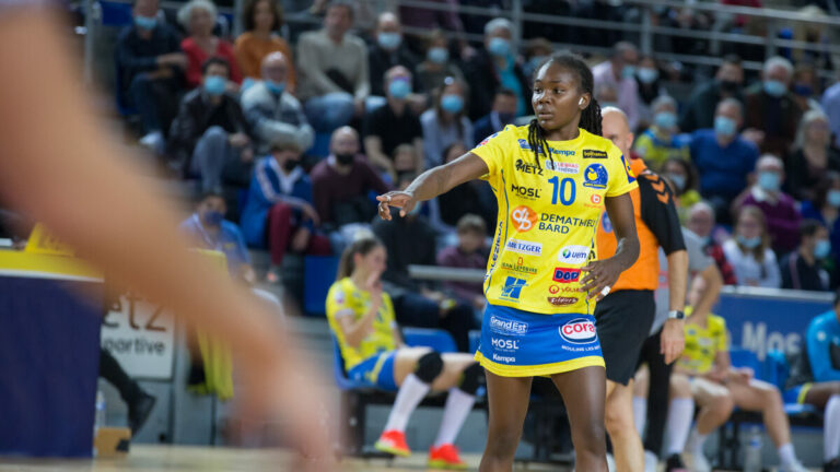 382 Le déplacement de Metz Handball à Sävehof a tenu toutes ses promesses. Malgré tout, les Dragonnes ont confirmé leur deuxième place au sein de leur groupe de Champions League. Libérées du poids du championnat jusqu’à Janvier 2022, les joueuses de Metz Handball abordaient ce Dimanche une série de matchs de Champions League avec un déplacement en Suède pour affronter Sävehof. Des surprises dans le groupe Alors qu’elle avait annoncé elle même qu’elle ne reprendrait pas la compétition avant 2022, Metz Handball a annoncé la présence d’Orlane Kanor dans le groupe à quelques heures du match. Un choix surprenant alors que l’arrière gauche n’a repris que récemment l’entraînement avec l’équipe première. On imagine donc que l’impatience de la joueuse à l’idée de retrouver le groupe lui a permis de franchir les étapes plus vite que prévu. Dans un autre registre, ce match a vu la première apparition sous les couleurs Messines d’Adriana Cardoso. Le dossier de la Brésilienne, récemment recrutée pour renforcer l’aile droite, a été validé à temps. Metz Handball, force tranquille Emmanuel Mayonnade faisait débuter le sept suivant : Ivana Kapitanovic – Debbie Bont – Laura Kanor – Camila Micijevic – Louise Burgaard – Tamara Horacek – Astride N’Gouan Alors que les encouragements d’Hatadou Sako résonnaient dans une salle particulièrement silencieuse, Jamina Roberts concluait en kung fu une combinaison entre ses deux ailières pour inscrire le premier but de la rencontre. C’est Astride N’Gouan qui se chargeait de lui répondre avec un tir au pivot bien plus conventionnel. Dès lors, le duel était bien lancé puisque les deux buts suivants étaient inscrits par les mêmes joueuses. Cependant la première équipe à faire le break fut bel et bien Metz Handball. Louise Burgaard trouvait le petit filet de Wilma Kroon Andersson, Astride N’Gouan inscrivait déjà son troisième but et l’équipe profitait du premier arrêt d’Ivana Kapitanovic pour permettre à Tamara Horacek d’ouvrir son compteur. (3-5, 6ème)Moins imaginatives en phase offensive les Suèdoises, calaient sur un tir lointain et Camila Micijevic les punissait avec un missile dont elle a le secret, en lucarne. Pinpoint precision from @MetzHandball's Camila Micijevic as she smacks the ball into the top corner! 🎯#MOTW #deloehfcl pic.twitter.com/aIIzMtasOI— EHF Champions League (@ehfcl) November 14, 2021 Maladroite, à l’image du début de match de son équipe, Trine Mortensen perdait une balle de contre attaque par un marcher. Mais Jamina Roberts poussait Méline Nocandy à la faute pour redonner de l’air aux siennes. Thea Blomst convertissait le jet de 7 mètres et la capitaine Messine rejoignait le banc pour deux minutes. Une exclusion non sans conséquence puisque Mathilda Lundström venait faire fondre l’écart à son tour. A peine revenues à sept, c’est Tamara Horacek qui se mettait à la faute et rejoignait le banc pour deux minutes, occasionnant trois balles d’égalisation pour Sävehof. La première était stoppée par Kapitanovic, la deuxième par la barre transversale et la troisième était annulée par une faute offensive. (5-6, 12ème) Les Messines, muettes en attaque depuis de longues minutes se reposaient sur le bras de Burgaard après une passe de Nocandy pour avancer à nouveau. Micijevic doublait la mise, mais sur la phase défensive suivante Méline Nocandy écopait déjà de sa deuxième suspension pour deux minutes. Cette fois Sävehof ne capitalisait pas. Pire, sur une faute qui ne semblait pas vraiment évidente, Thea Blomst écopait de la première suspension du match pour les Suèdoises. Sur l’action suivante, Nina Koppang inscrivait un but plein de rage mais heurtait le sol avec son bras droit à la retombée et quittait la partie prématurément. (6-11, 17ème) Bruna de Paula et Méline Nocandy combinaient pour un kung fu et donnaient les raisons suffisantes à Rasmus Overby de poser un temps mort. Mais les choses ne s’arrangeaient pas pour son équipe puisque Sarah Bouktit, fraichement entrée, convertissait une offrande de Burgaard. Adiana Cardoso inscrivait son premier but en tant que joueuse de Metz Handball mais la révolte sonnait du côté de Sävehof par le biais d’Ellenor Aström Nilsson, Frida Rosell et Mathilda Lundström. Jamina Roberts concluait quant à elle la mi temps après une interception de Laura Jensen. Score à la mi-temps : 12-15 Sur une longue passe de Méline Nocandy, 𝗔𝗱𝗿𝗶𝗮𝗻𝗮 𝗖𝗮𝗿𝗱𝗼𝘀𝗼 𝗗𝗲 𝗖𝗮𝘀𝘁𝗿𝗼 (@docecastro) marque son premier but sous les couleurs messines en @ehfcl dans le petit filet suédois 🤭🥰#deloehfcl pic.twitter.com/U0Z48yJjYT— Metz Handball (@MetzHandball) November 14, 2021 Bruna de Paula and Meline Nocandy combine for this tidy little in-flight – what a connection in the @MetzHandball back court!#MOTW #deloehfcl pic.twitter.com/wgDCDV22BB— EHF Champions League (@ehfcl) November 14, 2021 Sävehof n’abandonne pas De retour des vestiaires, Laura Jensen scorait la première et permettait à Sävehof de reprendre son comeback là où il s’était arrêté. Mais en raison de nombreux loupés de part et d’autre, le score restait figé jusqu’à ce que Chloé Valentini, opportuniste, saisisse un ballon dévié par Kroon Andersson et l’envoie de manière implacable dans les filets. Dans la foulée, Tamara Haggerty commettait une faute et écopait d’une suspension. (13-16, 4ème) Mortensen scorait un but et Metz répondait par une véritable série. Les tirs de Nocandy, Valentini, Bont, Micijevic et N’Gouan ne trouvaient pas de répondant malgré un temps mort adverse. Les Dragonnes en profitaient pour prendre leur envol (14-21, 8ème)Ida Rahunen Sembe stoppait l’hémorragie en prenant le meilleur sur Valentini puis Sako avant que Blomst ne convertisse un jet de 7 mètres pour inverser la spirale. Ma