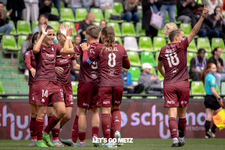 6,1K Seconde Ligue – Le FC Metz s’est attaché les services de deux nouveaux renforts. La formation de Marine Morel poursuit sa construction. Le FC Metz a annoncé la venue de deux nouvelles recrues à l’aube de la saison 2024-2025 de Seconde Ligue, la deuxième division du football féminin français. Toutes deux formées au Paris Saint-Germain, les jeunes Amélie Joseph (19 ans) et Leina Feddaoui (20 ans) viennent renforcer la formation de Marine Morel. Amélie Joseph Amélie Joseph sous les couleurs du Paris Saint-Germain – Photo : PSG Formée au PSG, Amélie Joseph s’est engagée au FC Metz. Si elle évoluait essentiellement avec les U19 féminines ces dernières saisons, l’attaquante est parvenue à se frayer une place à quelques reprises au sein de l’armada parisienne en D1 Arkema. Du haut de ses 19 ans, Amélie Joseph a disputé deux rencontres avec l’équipe première du Paris Saint-Germain, pour une titularisation. Elle aura tout le loisir d’exprimer son potentiel à l’étage inférieur, en Seconde Ligue, avec le FC Metz. Leina Feddaoui Leina Feddaoui à la lutte avec Mahé Maurice lors de son passage à Metz en 2022 avec les U19F du DFCO – Photo : Julien Buret / Let’s Go Metz Agée de 20 ans, la nouvelle recrue messine a été formée au PSG. Leina Feddaoui a ensuite pris la direction du Dijon FCO en 2021 où elle a évolué avec les U19 Nationaux. La saison dernière, elle a franchi un nouveau palier en signant à Montauban en D2 Féminine, où elle a pris part à 12 matchs de championnat. Elle n’a malheureusement pas pu éviter la descente de son club en 3e division. Milieu de terrain polyvalente, elle est capable d’évoluer sur le côté et dans l’axe en relayeuse. La native d’Épinay-sur-Seine continuera donc sa formation sous les ordres de Marine Morel avec le FC Metz. avec Julien Buret Photo à la une : Julien Buret / Let’s Go Metz