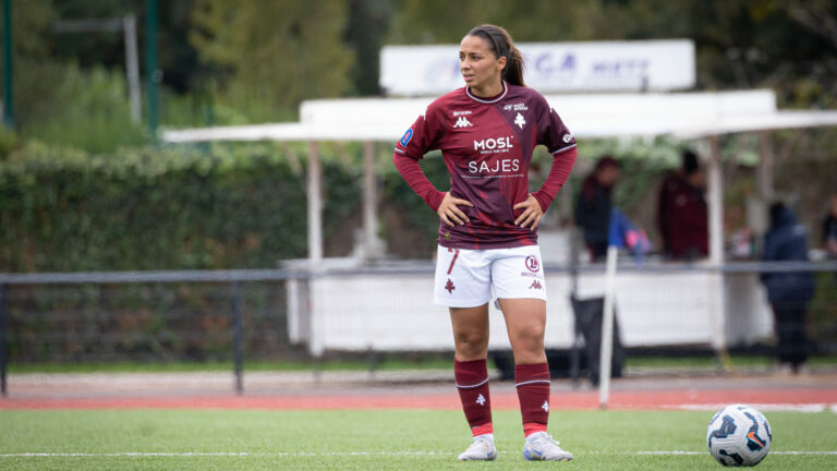 2,5K Le FC Metz a concédé sa première défaite de la saison en Seconde Ligue en s’inclinant sur le terrain du Mans (2-1), dimanche 6 octobre. Après sa première victoire de la saison, le week-end dernier face à l’US Saint-Malo, le FC Metz voulait enchainer, ce dimanche 6 octobre sur la pelouse du Mans. Il n’en fut rien. Les protégées de Marine Morel repartent de la Sarthe bredouilles, avec une première défaite (2-1) en Seconde Ligue. « On savait que Le Mans était une équipe joueuse et pas facile à manœuvrer. On ne peut pas se permettre de jouer une mi-temps sur deux », constate la coach messine.Les Mosellanes ont payé une entame de match délicate, en témoigne l’ouverture du score de Sana Guermazi (1-0, 23′). « En première mi-temps, on était un peu aux abonnés absents. On a manqué de vie, on était un peu éteintes… », explique Marine Morel. Seynabou Mbengue parvenait malgré tout à ramener le club à la Croix de Lorraine à hauteur (1-1, 36′), mais les Messines ont craqué en fin de match…C’est Melinne D’Oria qui enfilait le costume de bourreau dans les ultimes instants de la rencontre (2-1, 90′). « On a fait un changement tactique, avec Clara Petitjean en 6, qui a redonné de l’équilibre à l’équipe en deuxième mi-temps car l’absence de Léa Munier a été un manque pour nous au milieu de terrain. On voulait tenir ce point du match nul mais on s’est fait transpercer dans les arrêts de jeu, on a fauté dans la gestion en fin de match. C’est un rappel pour nous », souligne Marine Morel. Le FC Metz figure à la 7e place de Seconde Ligue après cette défaite. Prochain rendez-vous pour les Messines, dimanche 13 octobre (13 heures) à Marseille, pour un duel face à l’OM. Le Mans 2-1 FC Metz Mi-temps : 1-1. Buts pour Le Mans : Guermazi (23′), D’Oria (90′) ; pour le FC Metz : Mbengue (36′). Le Mans : Dumas – Roger, Giffaut, Guermazi (Leveau 65′), Salomon, Gasnier (Siluvangi 65′), D’Oria, Nado (Bourdoiseau 90′), Huet, Faity (Yetna 78′), BouzidFC Metz : Genty – Lambert, Moreira, Feddaoui (Antoine 46′), Mbengue (Bouktit 74′), Joseph, Oliveira Bras, Thivillon, Boutaleb, Rougemont, Petitjean Crédit photo : Julien Buret / Let’s Go Metz (archive)