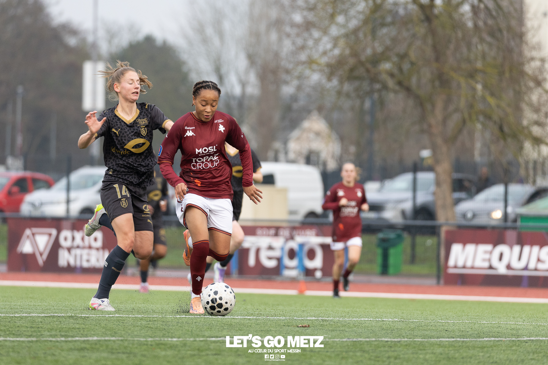447 Les joueuses du FC Metz terminent l’année 2025 de la pire des manières en s’inclinant 1-3 face au Stade de Reims. Une défaite qui fait mal mentalement et relance les Champenoises. Marine Morel voulait faire de Dezavelle une forteresse imprenable : objectif définitivement non atteint pour cette première moitié de saison. Les joueuses du FC Metz ont enregistré leur quatrième défaite à domicile de la saison face au Stade de Reims, sans compter celles en Coupe de France et en Coupe de la Ligue. Surprises dès la première période par une ancienne de la maison grenat, Shana Battouri, les protégées de Marine n’ont jamais su prendre réellement le match à leur compte et se sont effondrées en seconde période. La réduction du score de Mikayla Dayes en fin de match ne changeait rien. Le FC Metz relance donc les Rémoises au classement de Seconde Ligue et termine 2025 en eau de boudin. Les Messines vont donc avoir un peu plus de quinze jours pour préparer la réception du RC Strasbourg en Coupe LFFP. Espérons que 2026 offre enfin des victoires aux supporters de Dezavelle. FC Metz : Genty, Ngambu Ngiangi, Rageot, Jacob, Petitjean, Antoine, Munier, Fodil, Abdourahim, Ribeyra JosephStade de Reims : Kack, Vilgrain, Ou Mahi, Maniouloux, Mouzon, Nico, Battouri, Bouchard, Saidi Muscara, Chamsoudine, Bourgain Crédit photos : Julien Buret/Let’s Go Metz