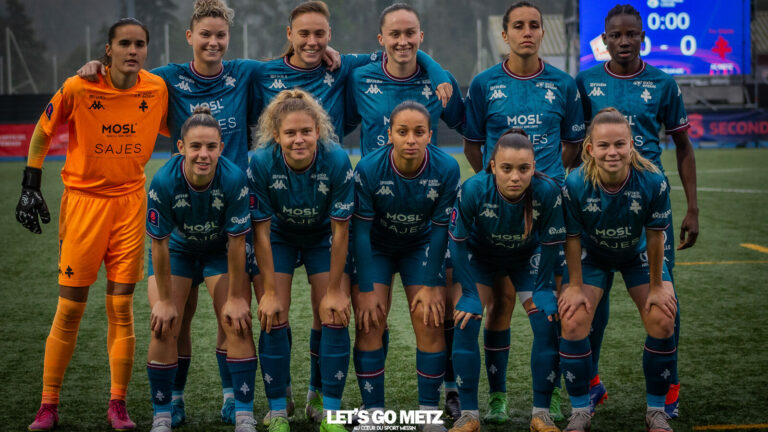 1,8K En déplacement à Lille avec de belles ambitions, le FC Metz chute face au LOSC. Une défaite pleine de regrets justifiée par un cruel manque de réalisme dans le dernier geste. Ce dimanche à l’occasion de la huitième journée de Seconde Ligue, le FC Metz se déplaçait à Lille avec une chose en tête, repartir avec un résultat positif. Mais la situation a pris une toute autre tournure, celle de la défaite. Sur les terrains de Villeneuve d’Ascq, les Messines se sont inclinées 1 à 0 face aux Lilloises. Marine Morel et ses joueuses peuvent avoir des regrets parce qu’il y avait la place pour aller chercher un point, synonyme de match nul. « Repartir avec un point n’aurait pas été démérité au vu de la seconde période », estime la coach du FC Metz. Mais à l’image de ce début de saison, les Messines ont eu des occasions, certes, mais ont cruellement manqué de réalisme devant les cages. « En causerie, j’ai parlé de réalisme, aujourd’hui ça n’a pas été respecté », confie Marine Morel. Une attaque trop timide pour inquiéter le LOSC Le FC Metz entamait cette rencontre avec de belles intentions et un pressing haut de toute l’équipe sur la défense lilloise. Mais, les Messines ont à peine eu le temps de rentrer dans le match qu’elles étaient déjà menées. Le LOSC profitait d’une triste perte de balle de Julie Genty pour inscrire le premier et unique but de la rencontre (1-0, 5′). Comme annoncé dans l’avant-match, l’attaque fait cruellement défaut au FC Metz, et il ne fallait pas beaucoup de temps avant de s’en rendre compte. Les milieux de terrain ne parvenaient pas à trouver les attaquantes, invisibles dans cette première période. Les nerfs des Messines étaient mis à rude épreuve, entre énervement et frustration, le FC Metz n’y arrivait pas. Malgré les pertes de balle et les mauvais choix de jeu, les Grenats essayaient tant bien que mal de se projeter vers l’avant. Il fallait attendre le dernier quart d’heure pour voir la première occasion franche de Metz, sur un corner rentrant où Léa Munier passait proche de tromper la gardienne lilloise (31′). Cette première mi-temps était à l’image du début de saison du FC Metz. « On a manqué d’engagements, de grinta, c’était la panique », affirme Marine Morel. Sur les deux seuls tirs grenats, aucun ne venait d’une attaquante. Une situation anormale dans laquelle le milieu n’arrivait pas à trouver l’attaque. Les quelques fois où les buteuses filaient au but, l’action ne donnait rien et se terminait en six mètres. « Il faut faire le job dans les deux surfaces, dans l’une, on l’a fait, dans l’autre non », révèle Marine Morel. La parade de la gardienne lilloise surprise par le corner rentrant de Léa Munier / Crédit : Léni Audin/LGM Du mieux dans le jeu, pas devant le but Au retour des vestiaires, l’équipe était méconnaissable. Les Messines revenaient fort dans la rencontre et le message était passé, elles n’avaient pas dit leur dernier mot. Les joueuses de Marine Morel mettaient en difficulté le LOSC qui, pendant un quart d’heure de folie, subissait les offensives. Le FC Metz passait tout proche de réduire l’écart sur coup franc suite à un cafouillage dans la défense adverse, mais la chance n’était pas au rendez-vous et le ballon s’écrasait contre le poteau (50′). Quelques minutes plus tard, sur un centre, Inès Boutaleb trouvait la tête de Mélissa Bethi qui ne réglait pas assez bien la mire pour tromper la gardienne (52′). Les filets lillois ne tremblaient toujours pas, mais les Grenats arrivaient enfin à trouver des solutions devant le but. « On a montré un autre visage en seconde période en réussissant à se trouver entre les lignes. On ne peut pas se permettre de jouer que 45 minutes », analyse Léa Munier. Le FC Metz méritait ce but de la délivrance mais sans réalisme devant les cages, il ne pouvait survenir. Les minutes défilaient et la défaite se rapprochait, d’autant plus que le LOSC passait tout proche de sceller le sort des Messines en inscrivant un but finalement annulé pour hors-jeu (86′). Dans les derniers instants de la rencontre, un ballon de la tête de la jeune Amélie Joseph finissait sa course sur la main de la défenseure Célia Delaby, offrant aux Messines le penalty de la dernière chance (88′). Mais, à nouveau, la finition jouait des tours au FC Metz. Amélie Joseph manquait son tir au but et offrait la victoire à Lille. Ainsi, avec cette nouvelle défaite, le FC Metz se positionne à la neuvième place de Seconde Ligue. « Il faut qu’on se remette toutes en question, les paroles ne suffisent pas, laissons place aux actes », lance Marine Morel. Crédit : Léni Audin/LGM Cap vers la Coupe de France Désormais, un long mois sans championnat se profile dans lequel les Messines disputeront des matchs amicaux et feront leur entrée en lice en Coupe de France le dimanche 24 novembre prochain face à Molsheim (R1F). « C’est un adversaire inférieur à nous, c’est à ce moment qu’on va devoir montrer les crocs et être efficace devant le but », affirme Marine Morel. Pour Léa Munier, ce match est un moyen de garder le rythme et de retrouver la confiance. « La coupe va nous permettre de garder le rythme, il va falloir qu’on se remette en confiance et qu’on travaille sur les automatismes ». Lille OSC 1 – 0 FC Metz Composition du LOSC : Beitz (c) – Delecroix (Vanuxeem, 73′), Mbala (El Chad, 46′), Delaby, Bamenga – Canesa, Johnson, Hlushchenko (Policnik, 90′) – Hamidou, Devlech, Da Rocha (Pian, 47′)Composition du FC Metz : Genty – Lambert, Antoine, PetitJean, Feddaoui – Munier, Rougemont (c), Thivillon (Oliveira Bras, 79′) – Bethi (Jacob, 85′), Boutaleb, Mbengue (Joseph, 71′) Crédit photos : Léni Audin/LGM