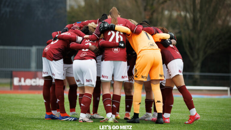 984 Après une belle victoire face à l’OM à domicile, c’est sur la pelouse de l’US Saint-Malo que les joueuses du FC Metz vont tenter de prendre trois points précieux dans la lutte pour le maintien. La joie était palpable il y a deux semaines à Dezavelle, à l’issue de la belle victoire des Messines face à l’ogre marseillais. Outre un bol d’air au classement, les protégées de Marine Morel retrouvaient avec ce succès, une confiance qui les fuyait depuis plusieurs mois. Solides défensivement, efficaces en attaque, et plus tranchantes physiquement, les Grenats ont régalé et montré à tous qu’elles en avaient sous les crampons. Il va falloir maintenant confirmer dès ce dimanche à Saint-Malo, où le FC Metz s’apprête à voyager l’esprit plus léger, mais avec l’envie de marquer les esprits. À l’aller, les joueuses du club à la Croix de Lorraine l’avaient emporté 2-0 devant leur public. Du côté de Saint-Malo, les coéquipières de l’ex Messine Kelly Kone, vont vouloir remettre l’église au milieu du village. La partie s’annonce très disputée pour ce désormais classique de la Seconde Ligue. Les Grenats peuvent-elles enchaîner ? Trois nuls, trois défaites, le bilan des Messines en déplacement laisse à désirer depuis le début de saison. Souvent en manque de réussite, les protégées de Marine Morel ont également fait preuve de candeur lors de certaines rencontres et ont manqué le coche à plusieurs reprises. Mais la donne pourrait bien changer ce dimanche. Fortes de leur succès face à un prétendant à la montée, les Grenats semblent avoir compris qu’elles pouvaient rivaliser avec n’importe quelle équipe. Elles semblent également avoir réalisé que bien jouer au football ne suffisait pas toujours pour gagner. La Seconde Ligue exige aussi d’autres vertus, comme la résilience, l’abnégation, et même un brin de malice. Et face à Saint-Malo, le FC Metz devra sans doute être bien armé pour revenir avec des points. Le combat s’annonce difficile mais si elles mettent les mêmes ingrédients qu’il y a deux semaines face à Marseille, nul doute que les Messines seront récompensées. La victoire semble à la portée du FC Metz ce dimanche à Saint-Malo. Elle viendrait confirmer les belles promesses entrevues à domicile face à l’OM et permettrait de vraiment respirer dans cette seconde moitié de saison. Crédit photos : Nicolas Martino/Let’s Go Metz