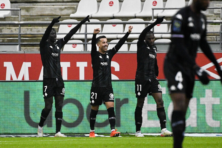 541 Grâce à sa précieuse victoire 1-0 sur la pelouse du Stade de Reims, le FC Metz se donne un grand bol d’air ! Les Grenats sortent de la zone rouge et grimpent même à la 15ème place de Ligue 1. Les hommes de Frédéric Antonetti réalisent là une très belle opération. Résiliente, courageuse, héroïque… Les adjectifs ne manquent pas pour décrire la prestation du FC Metz ce dimanche à Reims. Une nouvelle fois décimés, les Grenats ont fait contre mauvaise fortune bon cœur pour arracher cette si précieuse victoire au Stade Auguste Delaune, face à une équipe rémoise elle aussi privée de nombreux éléments.Avec sa victoire, le FC Metz a réalisé la très belle opération de cette 21ème journée de Ligue 1. Les hommes de Frédéric Antonetti font en effet un bond au classement, passant de la 19ème à la 15ème place du championnat. Les Grenats ont profité de la déroute de Bordeaux à Rennes (6-0), du match nul de Lorient face à Angers (0-0), du revers de Troyes face à Lyon (0-1) et de la lourde défaite de Clermont à Monaco (4-0). Une composition alambiquée, mais qui a payé #SDRFCM [ ℂ𝕠𝕞𝕡𝕠𝕤𝕚𝕥𝕚𝕠𝕟 ]💥 La composition messine vous est présentée par Axia Intérim ! !AXIA Interim 👉 https://t.co/Je0NKMWd06 pic.twitter.com/0mQhileJzK— FC Metz ☨ (@FCMetz) January 16, 2022 Beaucoup imaginaient un 4-3-3 à l’annonce de la composition du FC Metz. C’est finalement dans un 3-5-2 que Frédéric Antonetti a disposé ses protégés. Kana-Biyik, Niakaté et Mbengué occupaient l’axe de la défense messine. Thomas Delaine, le flanc droit, laissant le rôle de piston gauche à Pape Ndiaga Yade.Ce dernier n’a jamais été en grande réussite à ce poste. Mais il s’est montré plutôt sérieux dans son rôle, notamment défensivement où il n’a été que rarement pris en défaut. Yade a également su apporter offensivement sur plusieurs séquences. Un match encourageant pour le joueur formé à Génération Foot.Thomas Delaine n’a lui pas vraiment été gêné d’évoluer sur son « mauvais » pied. En témoigne l’amour de passe décisive, du droit, qu’il a délivrée pour Ibrahima Niane. Le latéral a une nouvelle fois démontré qu’il était l’un des hommes forts du FC Metz. Choix payants pour Frédéric Antonetti. Un FC Metz conquérant et incisif à Reims Thomas Delaine, passeur décisif face au Stade de Reims. Le FC Metz s’est rendu ce dimanche à Reims avec la volonté de contrer les champenois. Un peu comme face à Strasbourg une semaine plus tôt. Mais à la différence d’un derby de l’Est où ils ont manqué d’allant, les Grenats ont su mettre en difficulté les rémois grâce notamment à beaucoup de présence sur les phases de contre-attaques.Malgré une possession déficitaire (42%), le FC Metz a davantage frappé au but que son adversaire (17 tirs dont 5 cadrés, contre 14 tirs pour 2 cadrés). Opa Nguette a su compenser l’absence de Nicolas De Préville. L’attaquant sénégalais s’est montré précieux sur les phases de transitions. C’est d’ailleurs lui qui réalise l’ouverture décisive pour Thomas Delaine sur le but messin. Ibrahima Niane en sauveur Ibrahima Niane, auteur du seul but de ce Stade de Reims – FC Metz. Auteur du seul but de la rencontre à la 61ème minute, Ibrahima Niane a retiré une belle épine du pied du FC Metz. Peu en réussite cette saison, l’avant-centre a parfaitement repris le centre merveilleux de Thomas Delaine pour tromper Predrag Rajković de la tête. Un but qui va faire un bien fou à Ibrahima Niane.Le numéro 7 messin aurait même pu doubler la mise, par deux fois (87°, 90°), mais il a manqué de lucidité dans la finition. On lui pardonnera aisément ces errances, étant donnés les efforts fournis toute la rencontre durant, notamment dans le combat avec les défenseurs adverses, comme face à l’excellent Yunis Abdelhamid. La jeunesse encore au rendez-vous Lenny Lacroix a disputé son premier match de Ligue 1 ce dimanche. A l’image de William Mikelbrencis (17 ans) face à Strasbourg, Lenny Lacroix a fait ses premiers pas en Ligue 1 ce dimanche à Reims. Le défenseur central de 18 ans a remplacé Jean-Armel Kana-Biyik, sorti sur blessure, à la pause. Le jeune Lacroix n’avait pas froid aux yeux dans ses interventions et s’est mis au niveau de ses coéquipiers en défense. Une belle première en Ligue 1 pour lui.Sikou Niakaté (22 ans) et Amadou Mbengue (20 ans) ont parfaitement rempli leur tâche face au Stade de Reims. Ils furent les grands artisans de la solidité défensive du FC Metz ce dimanche après-midi, bien aidés par les infatigables Pajot et Traoré qui ont été très actifs au pressing.Frédéric Antonetti parlait « d’un mal pour un bien » à propos des nombreuses absences, qui allaient offrir du temps de jeu aux jeunes pousses grenats. Force est de constater que la classe biberon du FC Metz fait le boulot en ce mois de janvier et réussit parfaitement sa formation accélérée. Crédit photo : Christophe Saidi/FEP/Icon Sport
