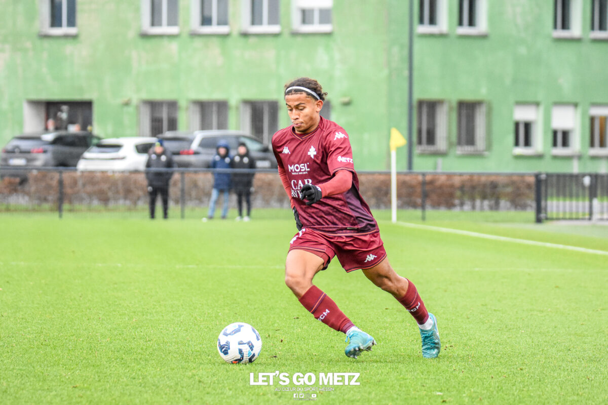 187 Tahirys Dos Santos serait en passe de signer son premier contrat professionnel au FC Metz. Le jeune défenseur grenat deviendrait ainsi le cinquième joueur du club à passer professionnel au cours de cette saison 2025-2026. Un nouveau chapitre pour Tahirys Dos Santos au FC Metz ? Actuellement sous contrat stagiaire chez les Grenats, Tahirys Dos Santos devrait prochainement passer professionnel, d’après le journal L’Équipe. Pour le jeune défenseur de 19 ans, la signature de ce contrat serait une étape majeure dans sa carrière sportive. Habitué au poste de latéral, Tahirys Dos Santos a participé à neuf des dix rencontres de National 3 cette saison, avant la tragédie de Crans-Montana. Après trois mois et demi d’absence, Tahirys Dos Santos a retrouvé les terrains la semaine passée. Entré en jeu lors de la victoire importante du FC Metz contre le FC Balagne lors de la 22e journée de National 3, Tahirys Dos Santos a réalisé une entrée satisfaisante, où il a dû résister à la pression défensive adverse en fin de match. Son passage en professionnel marquerait la cinquième signature d’un jeune joueur du centre de formation, après Diego Duarte, Nathan Mbala, Adam Marchal et, plus récemment, Abdoulaye Nassoko. Crédit photos : Mikaël Frank / Let’s Go Metz
