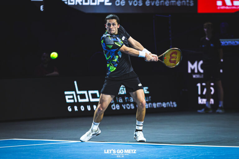 785 Harold Mayot a été éliminé au deuxième tour du Masters 1000 de Madrid ce vendredi. L’autre Mosellan du circuit, Ugo Humbert, s’apprête à entrer en lice. Toutes les bonnes choses ont une fin, l’aventure d’Harold Mayot à Madrid, aussi. Le Mosellan a fait douter le 21e joueur mondial, Francisco Cerundolo. Mais l’expérience de l’Argentin a primé dans les moments clés du match (6-3, 6-4). Dans le premier set, il n’a suffit que d’un petit break à Cerundolo pour qu’il ne réussisse à prendre l’avantage sur le Français. Dans la deuxième manche, Mayot a joué son va-tout, et même réussi à breaker l’Argentin, même si cela n’a pas payé en fin de compte. Avec ce tournoi réussi, Mayot – sorti des qualifications – va sans doute regagner en confiance après un début de saison où il n’aura pas été épargné par les blessures. Humbert face à Muller pour une place en seizièmes L’autre Messin du circuit, Ugo Humbert (tête de série N.21), s’apprête à entrer en lice face à son compatriote Alexandre Muller, ce samedi. L’occasion pour lui de faire un état des lieux de sa forme, à un mois de Roland-Garros. Depuis le Masters 1000 de Monte-Carlo, Humbert est diminué par une fracture au métacarpe survenue après le tournoi d’exhibition UTS à Nîmes. Cette blessure n’empêche pas le gaucher de jouer, certes. Mais son imposant bandage à la main droite complique sérieusement les choses en revers. Le Mosellan l’a dit, il ne se fixera pas d’objectifs de résultats tant qu’il n’aura pas retrouvé une pleine possession de ses moyens. Que du bonus, donc ? Réponse ce samedi. Crédit photo : Lucas Deslangles / Let’s Go Metz