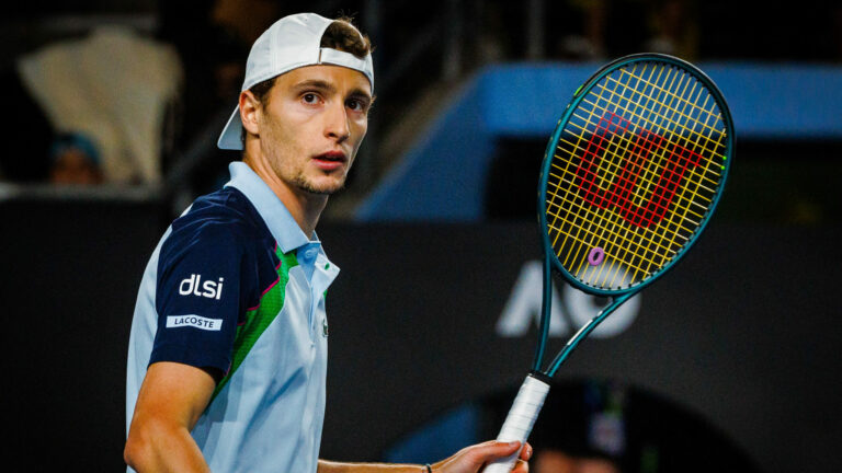 696 Vainqueur l’an dernier, Ugo Humbert n’aura cette fois passé qu’un tour à Dubaï. Tallon Griekspoor s’impose en trois manches (4/6 6/3 6/2) et se qualifie pour les quarts de finale. Le Mosellan Ugo Humbert ne défendra pas son titre à Dubaï. Les deux ex numéros uns mondiaux resteront au moins une année supplémentaire les seuls à avoir conservé leur titre. Après sa victoire rondement menée la veille face au Tchèque Jiri Lehečka, on aurait pu penser que la fraîcheur permettrait au Français de prendre le dessus et s’ouvrir la porte des quarts de finales. Surtout face à un adversaire qui venait de se qualifier après un combat de plus de trois heures face à Roman Safiullin et trois balles de match sauvées (victoire 5/7 76 7/6). https://twitter.com/atptour/status/1894766584788316639 Le début de rencontre le laissait espérer. Ugo Humbert s’est tout de suite montré agressif sur les jeux de service de Tallon Griekspoor. Si les quatre premiers engagements restaient à l’avantage des serveurs, le Néerlandais cédait sa mise en jeu suivante. Le Messin est parvenu à maintenir ce break d’avance jusqu’à la fin du set empoché 6 jeux à 4 en 39 minutes. Le plus dur semblait fait pour le Mosellan mais ce dernier va multiplier les fautes au fil de la rencontre. Le Batave se montrait lui solide sur ses mises en jeu sauvant notamment toutes les balles de break contre lui grâce à un service performant. Contrairement à la première manche, c’est Ugo Humbert qui a craqué le premier et s’est retrouvé mené 4 jeux à deux. Il n’est jamais parvenu à recoller au score et concède la seconde manche 6/3 après 1 h 22 de jeu. Lors du set décisif, Tallon Griekspoor a pris un ascendant définitif en agressant sans cesse Ugo Humbert sur ses engagements. A tel point que le Mosellan s’est fait breaker à deux reprises. Même s’il a eu des opportunités de revenir au score, ses rêves de doublé se sont envolés après trois dernier aces du Batave. Son prochain adversaire pourrait être à nouveau un Tricolore puisque il sera opposé au vainqueur du match entre Daniil Medvedev et Giovanni Mpetshi Perricard. Crédit photo : Patrick Hamilton / Iconsport Classement ATP Live