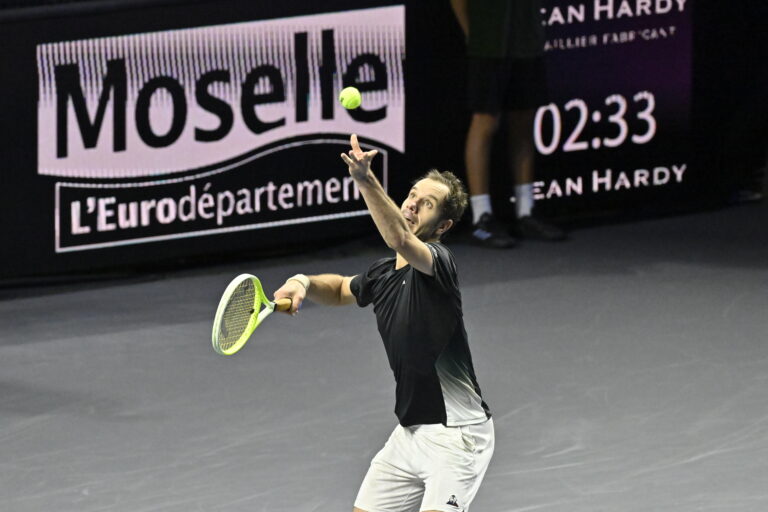 684 Découvrez les résultats du 5 novembre au Moselle Open. Une journée qui a de nouveau été ponctuée par le retrait de plusieurs joueurs stars. Richard Gasquet a fait sa dernière aux Arènes. Le Biterrois a offert une dernière grande partition avant de craquer dans un ultime tie break. Pour l’organisation du Moselle Open, la journée du mardi 5 novembre n’a pas été de tout repos. Après le retrait des têtes de série n°4 et 5, Holger Rune et Ugo Humbert, Andrey Rublev (n°1) a disputé sa première aux Arènes en début d’après-midi. Le Russe a livré un grand combat face à l’Italien Lorenzo Sonego. L’actuel numéro 9 mondial s’en est sorti en deux manches, mais a finalement annoncé son retrait du tournoi, tout comme Grigor Dimitrov… Andrey Rublev Richard Gasquet héros vaincu du jour Victorieux il y a tout juste 24 heures face à Monteiro, Richard Gasquet ouvrait les hostilités du deuxième tour, en Moselle. Opposé à l’Américain Alex Michelsen, le Français aura tout tenté pour se qualifier en quart de finale. En vain, à 38 ans le 133e mondial s’incline dans un des plus beaux matchs de la semaine jusqu’ici. Malgré des balles de match dans un tie-break décisif, Gasquet n’a pas eu l’énergie nécessaire pour battre le jeune Michelsen (20 ans). L’un des derniers mousquetaires a été héroïque mais battu, après 2 heures 45 de jeu. De son côté, Adrian Mannarino a chuté face au méconnu Chinois, Yunchaokete Bu. Pour son retour en Moselle, le gaucher n’a pas réussi à casser le plafond de verre, lui qui n’a plus remporté le moindre match depuis 2015 à Metz. Le Chinois, classé 72e mondial, affrontera ce mercredi le Néerlandais Jesper De Jong, 109e mondial, pour un ticket en quart de finale. Une affiche insolite que peu auraient imaginée à ce stade de la compétition. Bonzi crée la surprise, Moutet rejoint (déjà) les demi-finales Dans une journée dédiée à la fin du premier tour et au début des 8e de finale, soulignons les bonnes nouvelles du jour côté tricolore. Benjamin Bonzi a créé la surprise face à l’expérimenté espagnol Roberto Bautista. Le Nimoîs rallie les 1/8e de finale après sa victoire en deux sets. Hugo Gaston s’en est aussi sorti face à son compatriote Titouan Droguet (repêché des qualifications) en trois sets. En fin de soirée, un nouveau palpitant duel s’est achevé peu avant minuit. Corentin Moutet (66e mondial) s’est offert l’Allemand Jan Lennard Struff (40e mondial), en accélérant dans la dernière manche. Le nouveau chouchou du public de Roland Garros rejoint déjà les demi-finales, en raison du forfait du Russe Andrey Rublev. Andrey Rublev Les résultats du 5 novembre au Moselle Open Simple Guinard (LL) – Bergs (4/6, 4/6) Rublev (1) – Sonego (7/6 7/5) Gaston – Droguet (LL) (7/6, 4/6, 6/3) Bonzi (Q) – Bautista (7/6, 6/3) Bu – Mannarino (7/6, 6/4) Gasquet (WC) – Michelsen (8) (7/6, 6/7, 6/7) Struff (7) – Moutet (6/7, 7/5, 3/6) Double Herbert / Olivetti – Brown / King (WC) (7/6, 6/3) Martinez / Martos Gornes – Glasspool / Cash (5/7, 3/6) Haase / Miedler – Nys / Zielinski (7/6, 6/7, 5/10*) *super tie-break Crédit photos : Moselle Open (une), Mikaël Frank / Let’s Go Metz (corps)