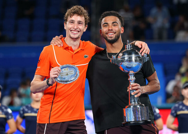 770 Ugo Humbert, 18e joueur mondial, s’est incliné en finale de l’ATP 500 de Tokyo face à son compatriote Arthur Fils, 24e au classement ATP. Il s’agit de la première défaite du Messin dans un match pour le titre. Il fallait bien que ça arrive. Après avoir décroché deux titres cette saison (à Marseille et à Dubaï), Ugo Humbert a perdu pour la première fois en finale, ce lundi à Tokyo face à Arthur Fils. Dans un match à rebondissements, le Mosellan avait pourtant pris le premier set. Il a même eu une balle de match dans la deuxième manche où il avait d’abord dominé son compatriote, qui semblait blessé. Mais Fils est revenu très fort dans son match, s’appuyant sur un service de feu pour bousculer Humbert. Au Japon, Ugo Humbert s’est hissé en finale après avoir battu l’Américain Nakashima (6-3, 6-2), puis le Britannique Draper avait abandonné dans la deuxième manche (7-5, 2-1). En demi-finale, il a pris le meilleur sur Machac (6-3, 3-6, 6-2). Arthur Fils, lui, a hérité d’une partie de tableau beaucoup plus relevée, et a su disposer de Taylor Fritz (6-4, 3-6, 6-3), de Ben Shelton (7-5, 6-7, 7-6), et du Danois Holger Rune (7-6, 7-6). Après une défaite au deuxième tour de l’US Open puis en Coupe Davis face à l’Espagne, Humbert avait fait le choix de la décontraction au Japon. Il n’était venu sur l’archipel du pacifique qu’avec un staff réduit. Le Messin va désormais se concentrer sur sa fin de la tournée asiatique, avec le Masters de Shanghai, puis sur la fin de saison avec le Moselle Open en ligne de mire. La belle semaine de Mayot à Orléans Harold Mayot s’est aussi illustré ces derniers jours, au Challenger d’Orléans. Même s’il n’est pas parvenu à décrocher le titre, l’autre Messin du circuit s’est hissé jusqu’en finale. Signe de régularité, mais aussi de progression à l’aube de cette fin de saison sur surface dure. Le Mosellan s’est notamment défait de ses compatriotes Antoine Escoffier (6-4, 7-6) et Benjamin Bonzi (6-4, 6-4). En demi-finale, il a de nouveau imposé son tennis face au Suisse Marc-Andrea Hüsler (6-4, 6-3), avant de céder en finale, au terme d’une longue semaine. Face au Britannique Jacob Feamley, il n’a manqué que quelques détails à Mayot, qui s’est incliné en deux sets, et surtout au terme d’une dernière manche très accrochée (6-3, 7-6[5]). Prochaine étape pour Harold Mayot : un autre Challenger, à Mouilleron-le-Captif. Crédit photo : Icon Sport (Une) et Valentin Lachaux (corps)