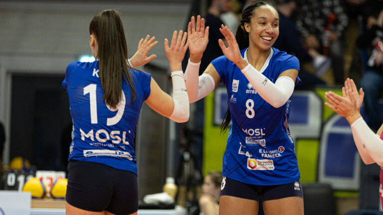 550 Mené au score après la perte du premier set, le TFOC ramène les trois points de son déplacement face aux Mariannes de Paris Saint-Cloud. Une victoire 3-1, de bon augure avant la réception du THY Istanbul en Coupe d’Europe. Le TFOC a décroché sa 10ème victoire de la saison à l’occasion de la 14ème journée de Ligue AF. Après leur magnifique succès face au leader, les Neptunes de Nantes, les joueuses de Romain Pitou ont signé une belle performance sur le terrain de la deuxième meilleure équipe du championnat. Portées par les supporters de Génération TFOC, les Bleues conservent leur 4ème place au classement, avec 28 points, et reviennent à seulement 2 unités de leur adversaire, Paris Saint-Cloud. Comme face à Nantes, Mariam Sidibé conclut l’éclatante victoire du TFOC sur son 10ème point de la rencontre. Pourtant, la soirée commençait mal pour les coéquipières de Greta Kiss. Même si Terville Florange tenait tête à Maria Yordanova et son équipe (8-7 et 16-15), les Mariannes signaient 6 points consécutifs pour s’imposer dans le premier set (25-20). Défense et service implacable La première manche camouflait les difficultés parisiennes. Par la suite, le TFOC dominait largement les débats. Barbora Kosekova enclenchait la marche en avant dès le début du deuxième set (8-5). Offensive avec 7 points marqués, la Slovaque distribuait parfaitement ses attaquantes. Les bleues ne laissaient aucune chance à leur adversaire (17-9). Les joueuses de Romain Pitou se transformaient en rouleau compresseur pour recoller au score (25-15). La troisième manche repartait sur les mêmes bases.La défense tervillo-florangeoise imposait le rythme du match. Le TFOC mettait à mal la réception des Mariannes (9-5). Le duo américain, Taylor Fricano (19 points) et Shannon Scully (18 points), offrait une avance solide (19-13). En route pour l’emporter, les Mosellanes se font une petite frayeur. Moins précis en réception, Paris Saint-Cloud remontaient jusqu’à compter un point de retard (22-21). Les bleues résistaient et menaient alors 2 sets à 1. En confiance pour la Coupe d’Europe Dans le quatrième set, le TFOC poussait pour empocher les trois points sous les bruits incessants de ses supporters (5-2). Les changements réalisés par l’entraîneur des Mariannes, Alessandro Orifice, n’y changeaient rien. L’intensité défensive et la qualité au service des joueuses de Terville-Florange annihilaient les ambitions parisiennes (10-4). Cette fois-ci, les coéquipières d’Alicia Ogoms gardaient l’adversaire à distance (16-10). Le TFOC signait un score sans appel et une victoire largement méritée (25-17).Ce succès maintient les bleues en pleine confiance avant d’affronter un gros morceau du volley-ball européen et mondial, le club turc THY Spor Kulübü, pour le match aller des 8èmes de finale de la CEV Cup. Romain Pitou et son staff se frotte à une adversité tout d’autre, ce mercredi 11 janvier, avant de retrouver le championnat contre Levallois à l’extérieur. Ce tour européen s’annonce comme le plus grand défi de l’histoire du club mosellan. Thomas Guth Crédit photo : Julien Buret/LGM