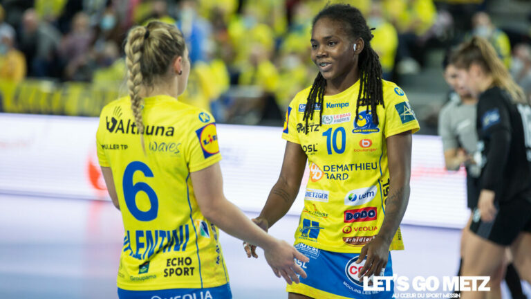 433 Quelques heures après la double opposition face à la Hongrie, Olivier Krumbholz vient de dévoiler l’identité des joueuses qui feront le voyage en Espagne pour le Mondial 2021. Trois messines figureront en équipe de France. L’équipe de France de handball s’est rassemblée le 21 Novembre à la maison du handball pour se préparer à disputer le mondial 2021. Au sein du groupe, trois Messines : Chloé Valentini, Méline Nocandy et Tamara Horacek. Toutes trois figuraient sur les feuilles de match des deux rencontres de préparation face à la Hongrie mais rien ne garantissait leur présence dans le groupe définitif. Luxe de champion Olympique ou tout simplement de nation forte du Handball mondial, Olivier Krumbholz avait quelques choix cornéliens à effectuer au moment de réserver les billets d’avion à destination de Barcelone.Cela n’a pas empêché les trois Messines de se voir attribuer un siège à leur nom pour aller défendre le statut de la France. En effet, les joueuses coupées sont Orlane Ahanda et Pauline Coatanea. Metz Handball bien représenté mais… Comme à l’accoutumée, on retrouve en équipe de France quelques ex Messines : Laura Glauser (Györ), Cléopatre Darleux (Brest), Allison Pineau (Krim Mercator), Béatrice Edwige (Rostov), Grâce Zaadi (Rostov) et Laura Flippes (Paris 92). Toutefois quelques noms manquent à l’appel. Le premier qui vient à l’esprit est naturellement celui d’Orlane Kanor. L’arrière a repris la compétition bien trop tard, avec seulement quelques minutes jouées lors des matchs face à Sävehof en Champions League, pour pouvoir prétendre à une place en Bleu dans l’immédiat. Mais il ne fait aucun doute que celle qui prétend revenir au jeu dans la meilleure condition physique de sa carrière devrait retrouver le groupe France en 2022. Emma Jacques, autre arrière qui aurait pu prétendre à une apparition en bleu, devra prendre son mal en patience avant de ressentir à nouveau le frisson de la Marseillaise. Appelée avec le groupe dans la préparation des JO, elle avait validé sa première sélection lors des éliminatoires de l’Euro 2022 en Octobre. Touchée à un genou face à Paris 92 la jeune Messine, ne doit pas être loin d’un retour mais devra tout de même attendre Janvier pour s’exprimer à nouveau en compétition officielle. Ses perspectives en bleu se situent quoi qu’il en soit sur le long terme. Enfin, ceux qui l’ont vu jouer cette saison le savent, l’absence d’Astride N’Gouan pour ce mondial a de quoi choquer. Réalisant une des meilleures entames de saison de sa carrière, aussi bien sur le plan offensif que défensif, la pivot n’a même pas été citée parmi les sélectionnables cet automne. En effet, la championne du monde 2017 et d’Europe 2018 était reléguée en position de pivot numéro 3, en tribune, depuis plusieurs compétions et aurait tout simplement décidé de s’écarter de l’équipe après un échange sain avec Olivier Krumbholz. Demandez le programme L’équipe de France démarrera son mondial face à l’Angola le 03/12 à 18h00. Suivra une rencontre face à la Slovénie le 05/12 à 18h00. Enfin un match contre le Monténégro viendra clore la phase préliminaire le 07/12 à 20h30.Si la France s’en tire en bonne position, il faudra ensuite disputer un tour principal à six équipes du 09 au 13 Décembre avant d’accéder aux quarts de finale (14/15 Décembre), demi-finales (17 Décembre) puis, qui sait, à une finale le 19 Décembre. Crédit photo : Matthieu Henkinet