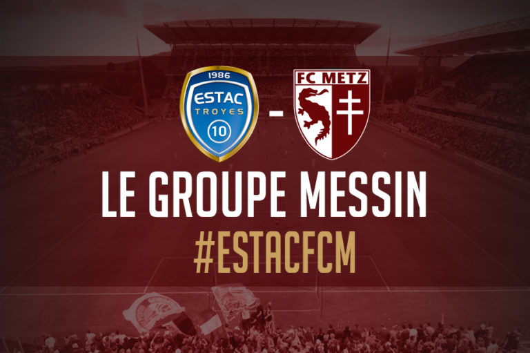 274 Ce vendredi à 20h00, les grenats se déplacent à Troyes pour la cinquième journée de Ligue 2. Découvrez le groupe convoqué par Frédéric Antonetti. Gardiens Delecroix, Oukidja Défenseurs Sunzu, Boye, Fofana, Jans, Rivierez, Balliu Milieux Boulaya, Cohade, Monteiro, Gakpa, Hein, Jallow, NGuette, Angban Attaquants Niane, Diallo, Traoré ESTAC – FC Metz Vendfredi 24 Août à 20h00 au Stade de l’Aube En direct dans sur beIN Sports 3 .