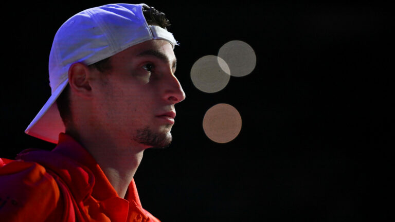 691 La marche était trop haute en finale du Rolex Paris Masters pour Ugo Humbert, face au numéro 3 mondial Alexander Zverev. Pris de vitesse, le Français s’est logiquement incliné en deux sets (6-2, 6-2). Ce dimanche 3 novembre, l’incroyable semaine d’Ugo Humbert au Rolex Paris Masters de Bercy touchait à sa fin. Le gaucher de 24 ans a notamment réalisé le match de sa carrière, si l’on ose dire, pour éliminer le numéro 2 mondial Carlos Alcaraz. Il a également réalisé le plus beau parcours de sa carrière en Masters 1000, en atteignant la finale. Ugo Humbert a subi la loi d’Alexander Zverev Dans un début de match de très haut niveau, Ugo Humbert concédait rapidement sa mise en jeu (2-1). La vitesse des frappes d’Alexander Zverev perturbait le gaucher, l’empêchant de rentrer dans le court pour attaquer. De plus, le Messin semblait pris par l’enjeu et commettait de grosses fautes directes. En 36 minutes, l’Allemand remportait facilement la première manche (6-2), ne perdant qu’un seul point sur son service. La physionomie du match ne changeait pas dans le deuxième set. Break d’entrée allemand, confirmé par un jeu de service maîtrisé (2-0). Même si le Mosellan a élevé son niveau de jeu et prolongé quelque peu le plaisir des spectateurs, Alexander Zverev s’est finalement imposé sans trembler (6-2, 6-2). Finir fort au Moselle Open Ugo Humbert n’était pas en mesure d’inquiéter Alexander Zverev dans cette finale. Mais le Messin pourrait encore finir sa saison avec un titre, en défendant son titre au Moselle Open. L’enjeu est grand, puisque Humbert doit défendre les 250 points récoltés l’année dernière. Sans Holger Rune, il attaque le tournoi en étant le quatrième joueur le mieux classé, mais certainement le plus en forme. En passant les premiers tours, Ugo Humbert finirait l’année en tant que numéro 1 français, devant Arthur Fils. Ugo Humbert a atteint la finale d’un Masters 1000 pour la première fois de sa carrière. Il sera de nouveau en action dès demain au Moselle Open, face au Français Hugo Gaston. Crédit photo : Anthony Dibon / Icon Sport