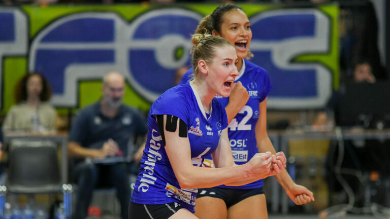 897 Le TFOC s’offre le champion en titre, Levallois Paris, au bout de la cinquième manche. Alors que les Bleues ont dominé pendant deux sets, elles se sont employées pour arracher les deux points. Un nouvel exploit pour les Bleues. Le TFOC vient à bout de Levallois Paris en cinq sets pour la 10e journée de championnat. Après avoir mené deux manches à rien, les Mosellanes se sont fait peur pour décrocher la victoire chez le champion en titre. Elles ont su imposer leur rythme notamment sur la première partie de la rencontre. Malgré un retour adverse, Terville Florange a pris le meilleur grâce à son service et à son bloc. Ce succès permet aux joueuses de Romain Pitou d’enchaîner après le RC Cannes et Quimper. Avec 18 points, elles font le trou sur le 8e, dernière place qualificative pour les play-off. Le TFOC impérial Un premier round d’observation. Le TFOC regardait les yeux dans les yeux Levallois Paris. En confiance, les partenaires de Justine Chereau menaient même la danse sur ce début de partie (7-12). Elles faisaient la différence dès le service. Karolina Fricova montrait sa solidité à l’attaque et Tatiana Kulikova mettait la misère à l’adversaire au bloc. Alors que les Bleues déroulaient leur jeu, les Parisiennes se sentaient perdues et dépassées. Terville Florange en profitait pour aggraver son avantage au score (10-19). En total maîtrise, les Bleues empochaient la première manche (19-25). Les Mosellanes mettaient toujours la pression chez leur adversaire. Dès le début du second acte, elles poursuivaient leur domination (3-6). Levallois Paris se faisait violence pour enfin entrer dans son match. En vain pour les Mariannes. Le TFOC éteignait toutes les tentatives de retour des locales. Avec un bloc-défense largement supérieur, les Tervillo-florangeoises devenaient un rouleau compresseur (8-18). Les Parisiennes explosaient dans tous les secteurs. Après temps morts et changements, Alessandro Orefice était à court de solution. De son côté, Romain Pitou était imperturbable et voyait son équipe s’envoler au tableau d’affichage (13-25). Plus de fautes au troisième set L’entame du troisième set était moins à l’avantage des Bleues. Levallois Paris résistait davantage. Avec un peu plus de réussite, les Mariannes faisaient la course en tête (12-9). Bianca Cugno retrouvait des couleurs à l’attaque. Alors qu’elle était inexistante sur les deux manches précédentes, la pointue argentine donnait de l’air à son équipe. Le TFOC commettait quelques fautes supplémentaires, suffisamment pour concéder un retard de quatre points. Le moment du retour de Corina Glaab. Absente depuis plusieurs semaines, l’Allemande remplaçait Justine Chereau à la passe. Une entrée qui n’inversait pas la tendance. Les locales réduisaient la marque sur le fil et relançaient la partie (25-23). Une victoire à l’arrachée des Bleues Levallois Paris était complètement revigoré (5-0). Après avoir été totalement dominées, les Parisiennes prenaient désormais la mesure de leur adversaire. Terville Florange faisait de moins en moins de différence, notamment offensivement. Le bloc mosellan était lui aussi moins efficace. Avec des difficultés dans leur jeu, les Bleues s’écroulaient. Les protégées d’Alessandro Orefice déroulaient à leur tour (17-8). Rien ne les arrêtait. Dos au mur, il y a encore un set, elles égalisaient au score sous un tout nouveau visage. Les Mariannes prenaient un ascendant psychologique dès le début du tie-break. Malgré ce désavantage, le TFOC tenait tout de même tête au champion en titre (4-6). Les coéquipières de Lexi Hadrych tentaient tout pour décrocher leur victoire. Un effort qui payait face au léger relâchement de Levallois Paris. Mais la fin de match restait totalement indécise. Seul un point séparait les deux équipes. Elles se répondaient coup pour coup. À ce jeu, c’était Terville Florange qui faisait la différence. La deuxième balle de match suffisait pour s’offrir un troisième succès de suite au bout du suspense (13-15). Levallois Paris 2 – 3 TFOC Sets : 19-25, 13-25, 25-23, 25-13, 13-15. Composition Levallois Paris : Morello, White, Murek, Gasala, Garcia, Cugno et Biemel (L). Entrées en jeu : Verger, Depie, N’Diaye, Tkachenko, Meyer, Becker. Composition TFOC : Hadrych, Chereau, Kulikova, Fricova, Lindgren, Bacon, et Coulet (L). Entrées en jeu : Messein, Louessard, Glaab. Crédit photo : Mikaël Frank / Let’s Go Metz (archive).