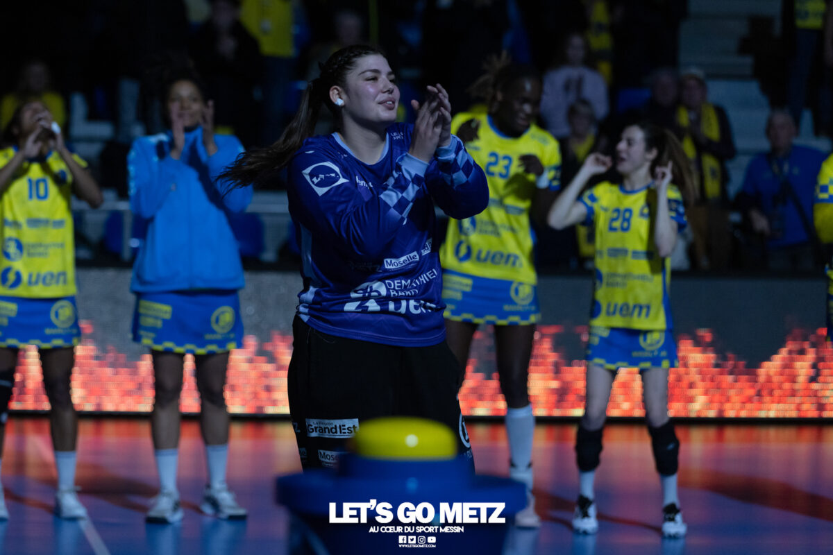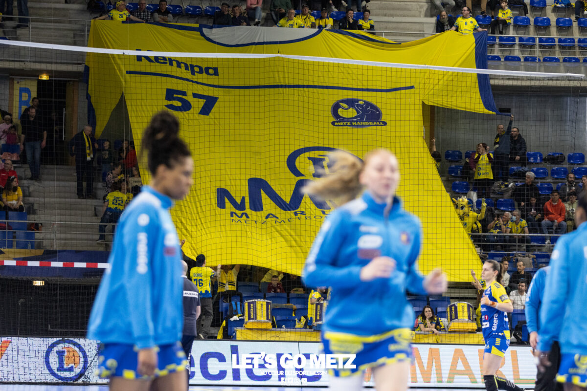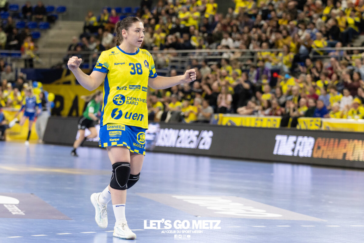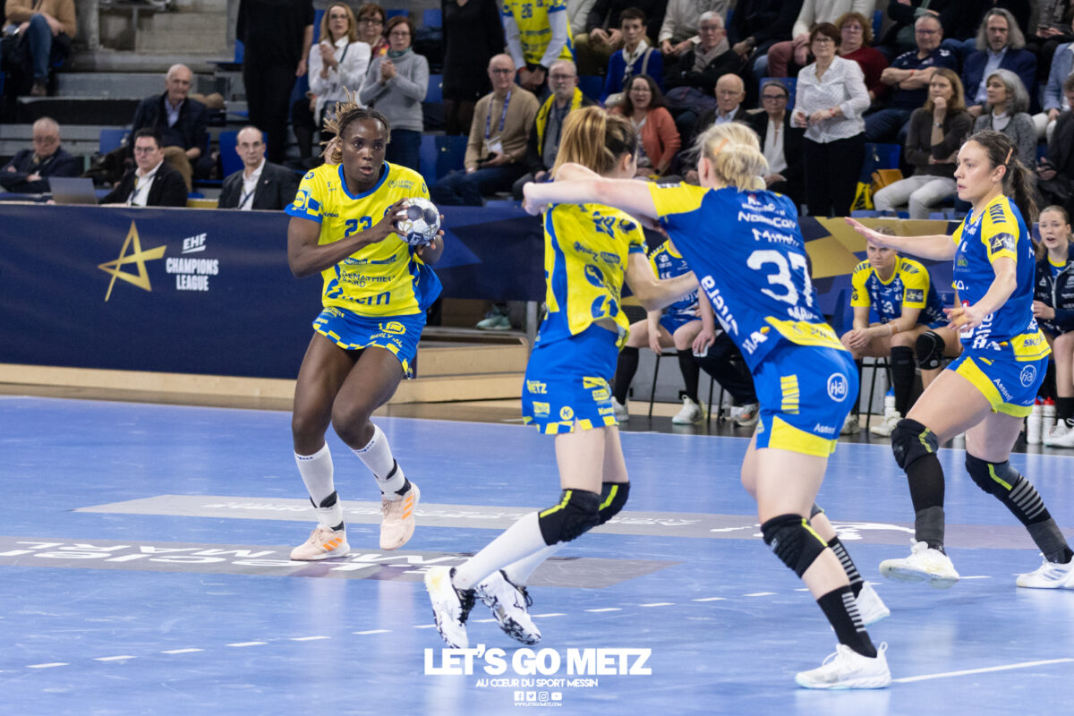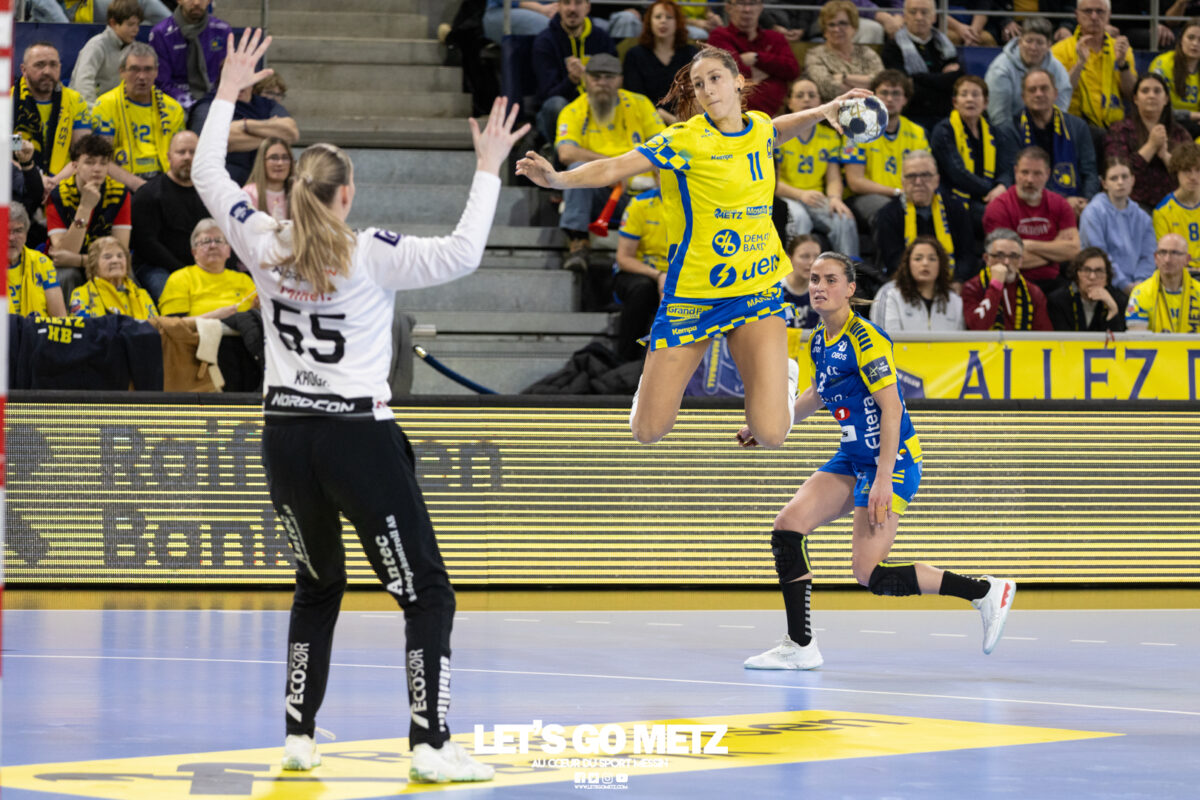 72 Après une semaine compliquée, Metz Handball renoue avec la victoire ce samedi face à Storhamar (29-27) mais les doutes demeurent. Cette rencontre face à Storhamar devait permettre à Metz Handball de repartir de l’avant et de retrouver la victoire. Si le succès est au bout et met fin à cette série de revers (face à Györ, puis à Brest), le contenu laisse les observateurs sur leur faim. Même s’il était attendu que les Norvégiennes seraient des adversaires coriaces, puisque c’est le cas à chaque fois qu’elles affrontent les Dragonnes, on aurait pu penser que les partenaires de Chloé Valentini aborderaient cette opposition de manière plus conquérante. Or il n’en fut rien tant il aura fallu attendre un long moment avant qu’elles ne prennent un ascendant définitif et s’assurent de la victoire. Les difficultés rencontrées face au champion d’Europe et le revers concédé face à son principal rival sur la scène nationale semblent être encore bien présents dans les têtes. Sarah Bouktit sauve les apparences mais Metz Handball voit ses leaders en difficulté Si Metz Handball a habitué ses suiveurs à commencer doucement ses matchs avant de porter un coup d’accélérateur souvent fatal à leurs adversaires, force est de constater qu’en ce début d’année, à l’exception de Dijon, il s’en trouve incapable. Si l’on pouvait expliquer les difficultés par le pédigrée des adversaires cette fois, face au sixième du groupe A de Ligue des champions, il était attendu que les filles prennent rapidement le match en main et les devants au tableau d’affichage. Pourtant, il a fallu attendre le quart d’heure de jeu pour voir les Jaune et Bleu mener après une réalisation de Petra Vamos (10-9, 16e). Avant? Les Dragonnes peinaient à freiner les velléités offensives scandinaves, notamment celles d’Annike Obaidli et d’Oda Mastad. Les Norvégiennes parvenaient même à prendre jusqu’à trois longueurs d’avance (5-8, 12e). Cet écart s’expliquait par une une défense moins rigoureuse devant une Johanna Bundsen moins inspirée qu’en Bretagne et, en attaque, par un manque de réussite ou de précision à l’image des poteaux touchés par Suzanne Wajoka. Lena Grandveau, placée arrière droite au coup d’envoi peinait à se montrer décisive dans les premières minutes avant de retrouver ses repères lors des entrées d’Ana Albek et Tyra Axnér (20e). Chloé Valentini et Sarah Bouktit, profitant de l’exclusion pour la seconde fois de Kjerstin Boge-Solas, donnaient l’avantage aux Lorraines en cette fin de premier acte (14-13, 24e). La pivot continuera à être influente dans les trente dernières minutes pour finir avec dix réalisations. Sabrina Novotna tient son match référence sous le maillot messin Mais l’entrée la plus impactante était celle de Sabrina Novotna à quelques encablures de la pause. La gardienne tchèque allait stopper un tir de Sanne Lokka Hagen peu de temps après et Metz Handball rejoignait les vestiaires avec un petit but d’avance (17-16, 30e). Une autre parade face à la capitaine adverse, Malin Aune, confirmait sa bonne dynamique. La gardienne internationale qui a peu l’occasion de s’exprimer, profitait de l’opportunité pour se montrer solide et réaliser sans aucun doute son meilleur match depuis son arrivée. Elle terminait la rencontre avec neuf parades et évitait à ses partenaires de subir une nouvelle déconvenue au cours de cette semaine compliquée. Car si Metz Handball parvenait à compter jusqu’à quatre buts d’avance après une réalisation de Tyra Axnér (24-20, 43e), ce pécule fondait rapidement sous l’impulsion de Véronika Mala, Malin Aune ou encore Élise Skinnehaugen et Mathilde Rivas-Toft (24-24, 48e). Les championnes de France parvenaient à prendre à nouveau leurs distances grâce à Sarah Bouktit, Suzanne Wajoka et Lucie Granier (28-24, 54e) et tenaient leur victoire (29-27) avec une dernière parade de Sabrina Novotna. Le groupe a désormais une semaine pour analyser ses dernières prestations et trouver comment gagner en constance et en fluidité des deux cotés du terrain avant de se rendre sur le parquet des Monténégrines de Buducnost Podgorica dimanche prochain (16 h). La galerie de la rencontre Les stats du match Metz HandballJohanna Bundsen (2 parades sur 15 tirs), Sabrina Novotna (9/23)Chloé Valentini (2 buts sur 3 tirs, capitaine), Tyra Axnér (2/4), Suzanne Wajoka (2/5), Anna Albek (2/4), Anne-Emmanuelle Augustine, Xenia Smits, Betchaïdelle Ngombele (2/5), Elea Ferdilus, Sarah Bouktit (10/14), Lucie Granier (5/8), Lena Grandveau (3/9), Petra Vamos (1/4), Lylou Borg, Clémence Castets.Exclusions: Ngombele (8e), Vamos (19e), Albek (51e) Storhamar Handball EliteJulie Victoria Nordevall (0 parade sur 1 tir), June Cécile Krogh ( 15/43 et 1 but sur 1 tir)Malin Larsen Aune (7 buts sur 7 tirs), Storbaek Ingeborg Monné (0/1), Mathilde Rivas-Toft (2/7), Élise Skinnehaugen (1/1), Nora Isabell Nordstrand (1/2), Anniken Obaidli (4/8), Ada Aalstad (0/2), Kjerstin Boge-Solas (5/10), Sanne Lokka Hagen (1/3), Oda Cathrine Lunne Mastad (5/7), Veronika Kafka Mala (2/3).Exclusions: Boge-Solas (24e, 30e), Mala (38e) Crédit photos: Matthieu Henkinet / Let’s Go Metz