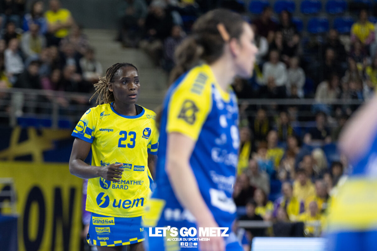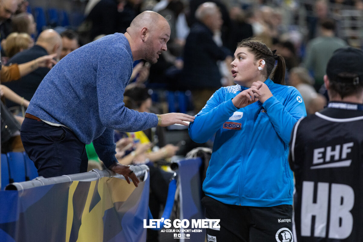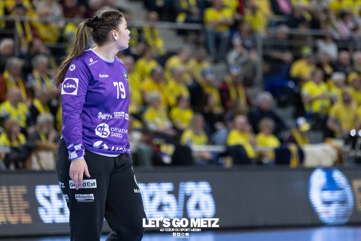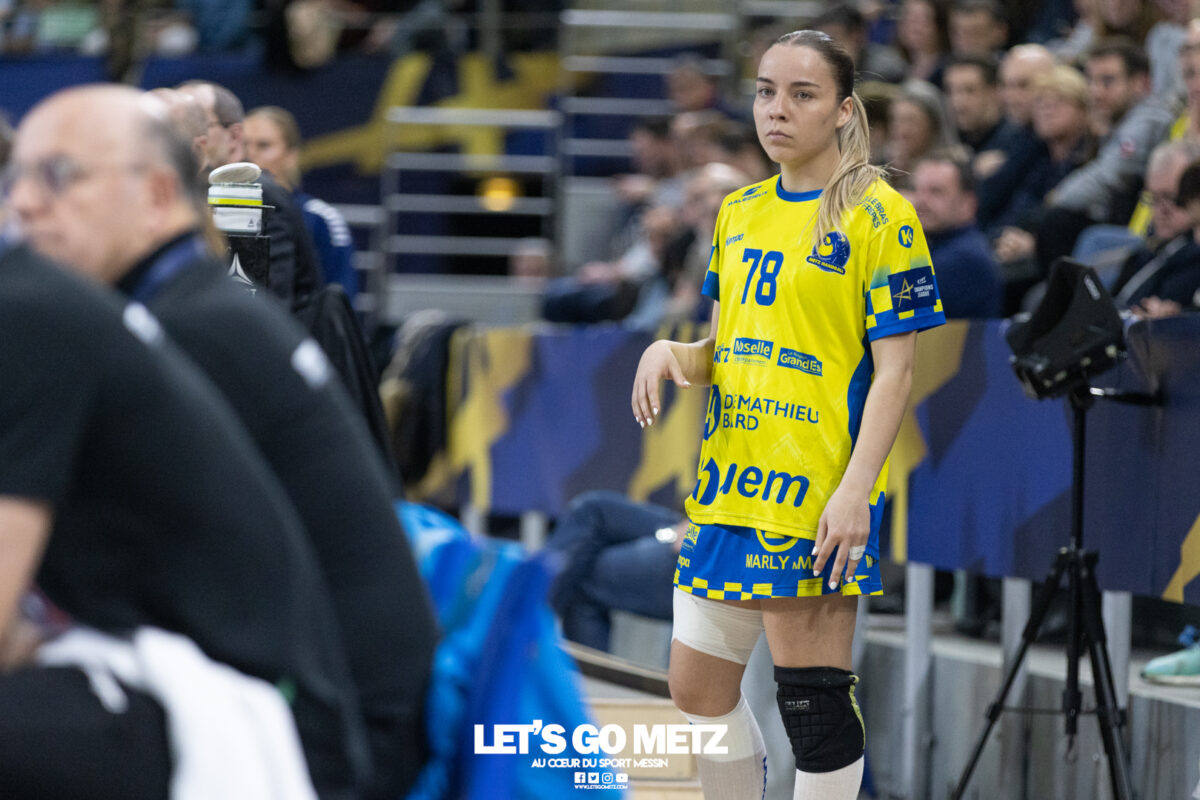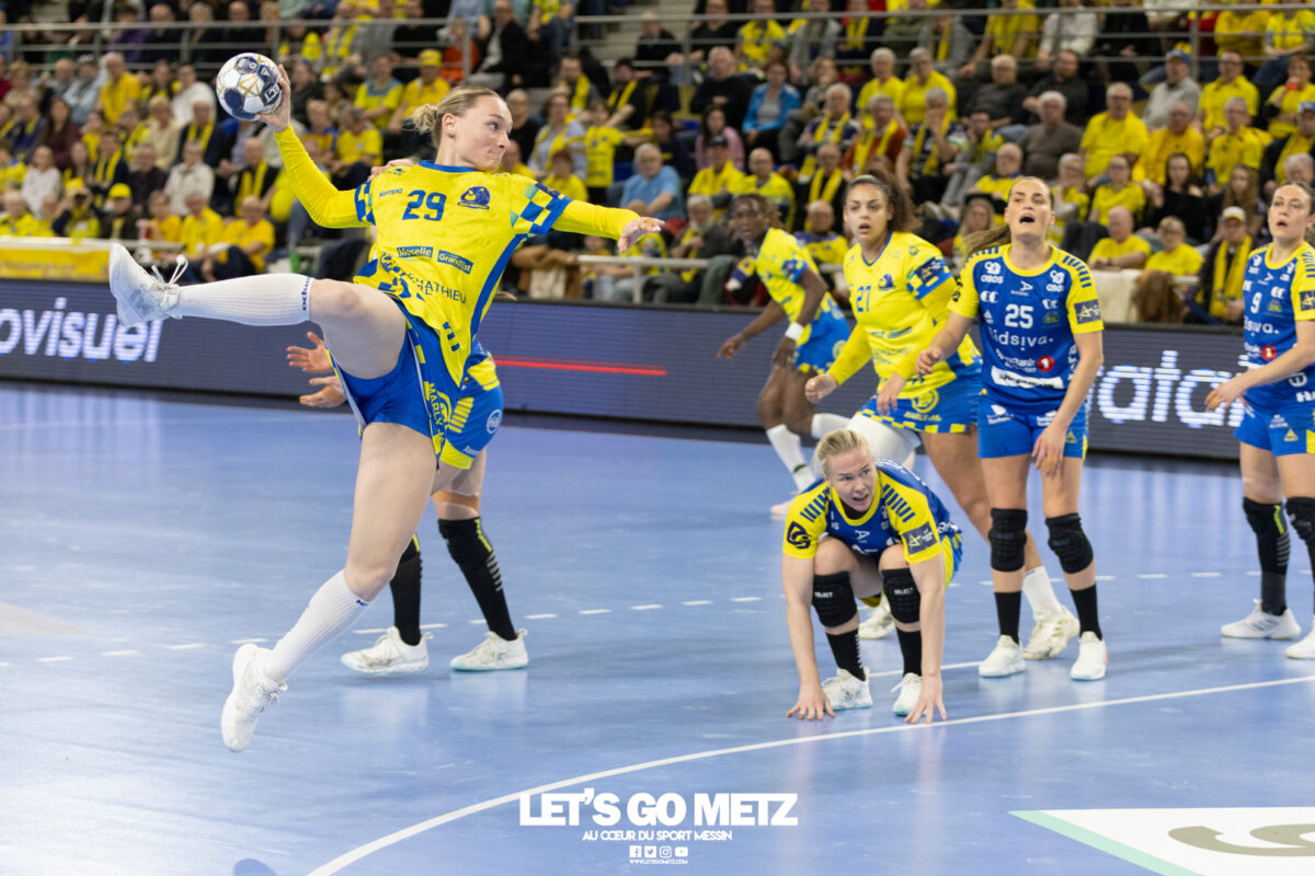 72 Après une semaine compliquée, Metz Handball renoue avec la victoire ce samedi face à Storhamar (29-27) mais les doutes demeurent. Cette rencontre face à Storhamar devait permettre à Metz Handball de repartir de l’avant et de retrouver la victoire. Si le succès est au bout et met fin à cette série de revers (face à Györ, puis à Brest), le contenu laisse les observateurs sur leur faim. Même s’il était attendu que les Norvégiennes seraient des adversaires coriaces, puisque c’est le cas à chaque fois qu’elles affrontent les Dragonnes, on aurait pu penser que les partenaires de Chloé Valentini aborderaient cette opposition de manière plus conquérante. Or il n’en fut rien tant il aura fallu attendre un long moment avant qu’elles ne prennent un ascendant définitif et s’assurent de la victoire. Les difficultés rencontrées face au champion d’Europe et le revers concédé face à son principal rival sur la scène nationale semblent être encore bien présents dans les têtes. Sarah Bouktit sauve les apparences mais Metz Handball voit ses leaders en difficulté Si Metz Handball a habitué ses suiveurs à commencer doucement ses matchs avant de porter un coup d’accélérateur souvent fatal à leurs adversaires, force est de constater qu’en ce début d’année, à l’exception de Dijon, il s’en trouve incapable. Si l’on pouvait expliquer les difficultés par le pédigrée des adversaires cette fois, face au sixième du groupe A de Ligue des champions, il était attendu que les filles prennent rapidement le match en main et les devants au tableau d’affichage. Pourtant, il a fallu attendre le quart d’heure de jeu pour voir les Jaune et Bleu mener après une réalisation de Petra Vamos (10-9, 16e). Avant? Les Dragonnes peinaient à freiner les velléités offensives scandinaves, notamment celles d’Annike Obaidli et d’Oda Mastad. Les Norvégiennes parvenaient même à prendre jusqu’à trois longueurs d’avance (5-8, 12e). Cet écart s’expliquait par une une défense moins rigoureuse devant une Johanna Bundsen moins inspirée qu’en Bretagne et, en attaque, par un manque de réussite ou de précision à l’image des poteaux touchés par Suzanne Wajoka. Lena Grandveau, placée arrière droite au coup d’envoi peinait à se montrer décisive dans les premières minutes avant de retrouver ses repères lors des entrées d’Ana Albek et Tyra Axnér (20e). Chloé Valentini et Sarah Bouktit, profitant de l’exclusion pour la seconde fois de Kjerstin Boge-Solas, donnaient l’avantage aux Lorraines en cette fin de premier acte (14-13, 24e). La pivot continuera à être influente dans les trente dernières minutes pour finir avec dix réalisations. Sabrina Novotna tient son match référence sous le maillot messin Mais l’entrée la plus impactante était celle de Sabrina Novotna à quelques encablures de la pause. La gardienne tchèque allait stopper un tir de Sanne Lokka Hagen peu de temps après et Metz Handball rejoignait les vestiaires avec un petit but d’avance (17-16, 30e). Une autre parade face à la capitaine adverse, Malin Aune, confirmait sa bonne dynamique. La gardienne internationale qui a peu l’occasion de s’exprimer, profitait de l’opportunité pour se montrer solide et réaliser sans aucun doute son meilleur match depuis son arrivée. Elle terminait la rencontre avec neuf parades et évitait à ses partenaires de subir une nouvelle déconvenue au cours de cette semaine compliquée. Car si Metz Handball parvenait à compter jusqu’à quatre buts d’avance après une réalisation de Tyra Axnér (24-20, 43e), ce pécule fondait rapidement sous l’impulsion de Véronika Mala, Malin Aune ou encore Élise Skinnehaugen et Mathilde Rivas-Toft (24-24, 48e). Les championnes de France parvenaient à prendre à nouveau leurs distances grâce à Sarah Bouktit, Suzanne Wajoka et Lucie Granier (28-24, 54e) et tenaient leur victoire (29-27) avec une dernière parade de Sabrina Novotna. Le groupe a désormais une semaine pour analyser ses dernières prestations et trouver comment gagner en constance et en fluidité des deux cotés du terrain avant de se rendre sur le parquet des Monténégrines de Buducnost Podgorica dimanche prochain (16 h). La galerie de la rencontre Les stats du match Metz HandballJohanna Bundsen (2 parades sur 15 tirs), Sabrina Novotna (9/23)Chloé Valentini (2 buts sur 3 tirs, capitaine), Tyra Axnér (2/4), Suzanne Wajoka (2/5), Anna Albek (2/4), Anne-Emmanuelle Augustine, Xenia Smits, Betchaïdelle Ngombele (2/5), Elea Ferdilus, Sarah Bouktit (10/14), Lucie Granier (5/8), Lena Grandveau (3/9), Petra Vamos (1/4), Lylou Borg, Clémence Castets.Exclusions: Ngombele (8e), Vamos (19e), Albek (51e) Storhamar Handball EliteJulie Victoria Nordevall (0 parade sur 1 tir), June Cécile Krogh ( 15/43 et 1 but sur 1 tir)Malin Larsen Aune (7 buts sur 7 tirs), Storbaek Ingeborg Monné (0/1), Mathilde Rivas-Toft (2/7), Élise Skinnehaugen (1/1), Nora Isabell Nordstrand (1/2), Anniken Obaidli (4/8), Ada Aalstad (0/2), Kjerstin Boge-Solas (5/10), Sanne Lokka Hagen (1/3), Oda Cathrine Lunne Mastad (5/7), Veronika Kafka Mala (2/3).Exclusions: Boge-Solas (24e, 30e), Mala (38e) Crédit photos: Matthieu Henkinet / Let’s Go Metz