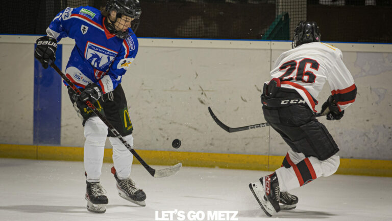 1,4K Ce samedi, Metz Hockey Club se déplaçait dans l’Essonne pour y affronter Évry-Viry 91. À la recherche d’une précieuse victoire, les Graoullys se sont inclinés 11 à 2 face à un adversaire hors de portée. Après avoir raté, avant la trêve, leur match face aux Caribous de Seine-et-Marne (8-4), les Messins avaient à cœur d’entamer l’année 2024 par une victoire. Pour ce faire, ces derniers affrontaient l’équipe B de l’EVH 91, actuellement troisième de la poule C de D3. Faisant preuve d’irrégularité depuis quelques semaines, l’équipe francilienne n’avait pas gagné depuis le 11 novembre dernier, à Metz. En quête de points, les deux équipes voulaient gagner.La rencontre débutait en faveur des Graoullys. Dès l’entame de match, Metz Hockey Club prenait une longueur d’avance (0-1, 6’38). Rapidement, les Franciliens se réveillaient et inversaient la situation, remportant le premier acte (2-1, 20′). En seconde période, les hockeyeurs de Metz ne parvenaient pas à reprendre la maitrise de la rencontre. Ainsi, ils laissaient l’EVH 91 prendre le large (6-1, 40′). Malgré la réduction du score de Yannick Hamri pour redonner l’espoir aux siens, les Jets creusaient l’écart dans un troisième acte remporté 5-1. Au terme d’une rencontre à sens unique, Metz Hockey Club s’inclinait lourdement, 11 à 2. La saison du Metz Hockey Club, marquée par divers mouvements, est décidément très compliquée. Les Messins auront l’occasion d’inverser la tendance dès le week-end prochain face à Châlons-en-Champagne, pour leur troisième déplacement consécutif. Un autre gros morceau de la poule en perspective pour les Graoullys. Crédit photo : Julien Buret/LGM Évry-Viry 11 – 2 Metz Hockey Club Tiers temps : 2-1, 4-0, 5-1Buts pour Évry-Viry : Dunberry (14’43 – 23’09 – 53’59), Said (16’35), Litim (22’45 – 58’21), Berardet (24’23), Blossier (34’36), Schue (45’24 – 51’16), Bouhier (47’47).Buts pour le Metz Hockey Club : Lorenzini (6’38), Hamri (42’32)Les statistiques des Graoullys :– Hamri : 2 points (1 but, 1 assist)– Lorenzini : 2 points (1 but, 1 assist) – Zeliska : 2 points (2 assists)