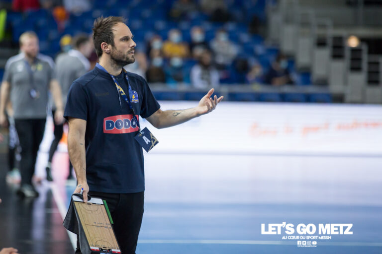 697 Pas vraiment de suspens cette année. Habitué à vivre un hiver mouvementé rythmé par l’attente de la prolongation de Emmanuel Mayonnade, le club messin a bouclé ce dossier plus rapidement que les années précédentes. En effet, il est donc lié jusqu’à l’été 2023. Cela a été annoncé après le départ inattendu de la capitaine Méline Nocandy, à Paris 92, la saison prochaine. Le club 23 fois champion de France se devait de rassurer des supporters inquiets. C’est au cours de la conférence de presse organisée aux Arènes de Metz, ce 1er décembre, que Manu Mayonnade a annoncé « Je reste au club pour une saison supplémentaire. » Le large sourire du président Weizman en dit long sur la relation entre les deux hommes et sur la volonté de garder le technicien dans la structure. « Si je pouvais signer Manu en CDI ou un CDD de 10 ans, je le ferais » se réjouit Thierry Weizman. Le duo Mayonnade / Andryushina va perdurer la saison prochaine. (Photo Matthieu Henkinet / Let’s Go Metz) Le coeur a ses raisons Conscient que le club est en pleine expansion, aussi bien sportivement que structurellement, Mayonnade apprécie voir Metz handball se développer. « J’ai un besoin fort de sentir que le club avance et c’est le cas (…) Léa, Greg, les salariés font un travail remarquable. Les contours des Arènes sont magnifiques, l’affluence est belle, ils ont dynamisé tout ça ». Pourtant courtisé par les plus grands clubs européens, le technicien de 38 ans assume vivre sa meilleure vie sur les bords de la Moselle. C’est aussi les résultats formidables de ce début de saison qui ont fait pencher la balance dans le choix d’Emmanuel Mayonnade. « On a une équipe incroyable, ce n’est pas seulement les joueuses, mais l’entité Metz Handball ». Un choix très tôt dans la saison qu’il explique comme un choix du coeur. « C’est un sujet qu’il fallait vite balayer à partir du moment où mon coeur avait pris le dessus. Je sentais qu’il fallait que je reste ici. Il ne fallait pas faire durer le suspens pour des bêtises. »