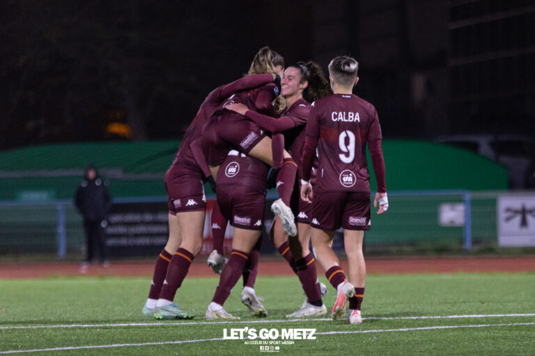 805 Les joueuses du FC Metz terminent l’année par une victoire en Coupe de France. Un large succès 5 à 0 face au FC Rueil Malmaison qui fait du bien avant une trêve bien méritée. Les Grenats terminent l’année de la meilleure des façons. Avant de pouvoir prendre quelques semaines de repos bien méritées, les joueuses du FC Metz avaient rendez-vous avec la Coupe de France. Un second tour plutôt bien négocié par les protégées de Jessica Silva sur la pelouse du FC Rueil Malmaison. Victoire 5 à 0 avec des buts de Kelly Koné (4′), Salma Amani(6′), Ottilia Grassetti (18′, 47′) et Lucie Calba (81′). Les Messines et leur coach vont donc pouvoir partir en vacances de Noël avec l’esprit léger et le sentiment du devoir accompli. « La trêve arrive au bon moment, on en avait tous besoin. Il faut maintenant bien se reposer avant de préparer la reprise début janvier« . Un match maîtrisé La coach du club à la Croix de Lorraine ne boudait pas son plaisir : « J’suis très satisfaite. Les filles ont pris le match au sérieux. Elles ont fini leurs actions devant le but. Elles ont maîtrisé la rencontre« . Le FC Metz a fait tourner un peu son effectif au cours ce second tour de Coupe de France. Jessica Silva a notamment titularisé Gilian Nottelet dans les cages à la place d’Emmeline Mainguy. Sur le côté droit, Alizée Leroy était titulaire à la place d’Estelle Laurier, blessée. Les U19 Kelya Gruszczynski et Manon Magalhaes sont également entrées en jeu. « On a fait jouer des petites qui étaient méritantes et travailleuses et elles ont assuré. Manon a fait une très belle rencontre en remplaçant Salma, sortie tôt sur blessure« . Une belle victoire collective et une qualification pour les 1/16èmes de finale de la Coupe de France qui verra l’entrée en lice des clubs de D1. Tirage au sort mardi 13/12 prochain. Composition du FC Metz : Gilian Nottelet (G), Léonie Richard, Clara Petitjean, Yakare Niakate, Alizée Leroy, Marine Morel (C)(Kelya Gruszczynski 66′), Salma Amani (Manon Magalhaes 23′), Kelly Koné, Ottilia Grassetti (Lucie Calba 78′), Marjorie Boilesen, Inès Boutaleb Crédit photo (Archives) : Julien Buret/LGM
