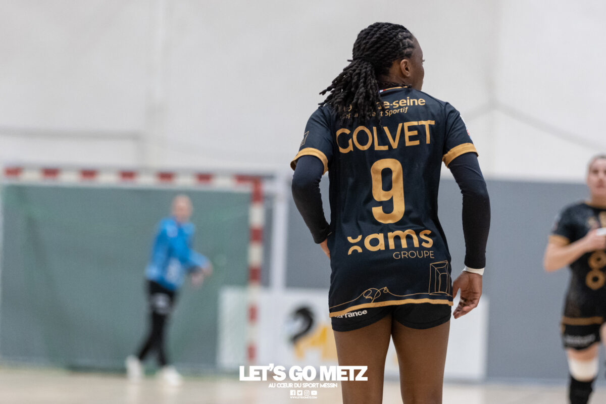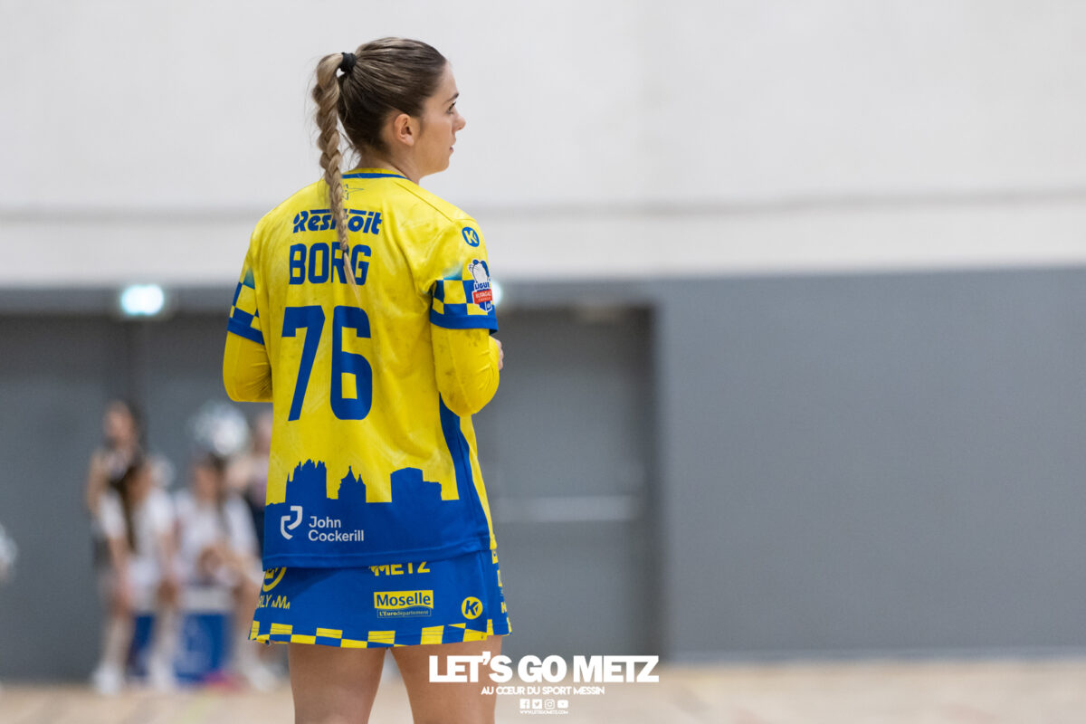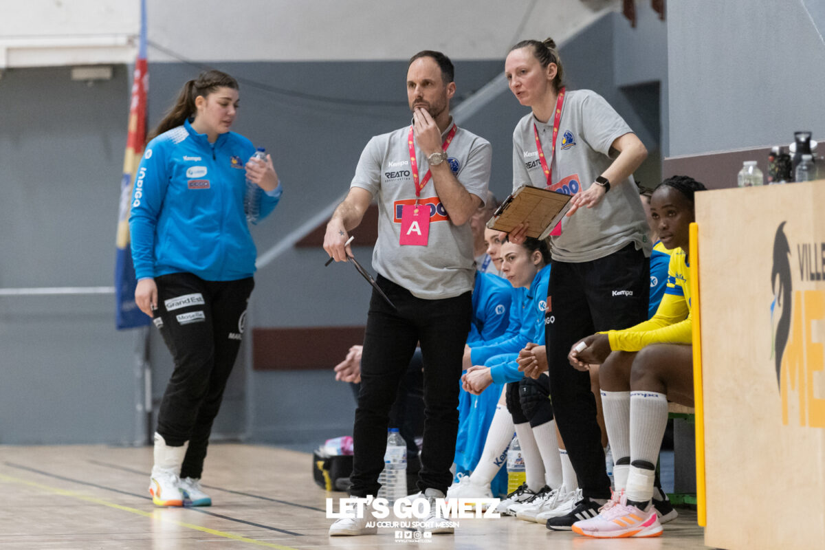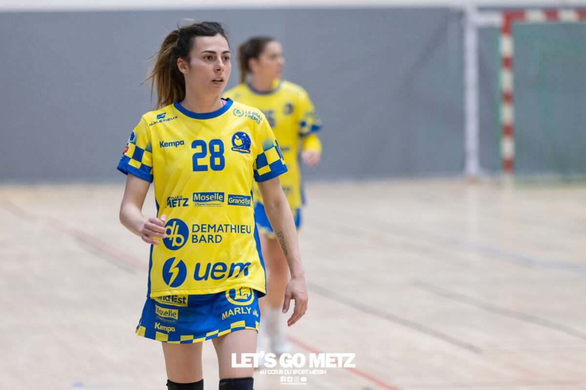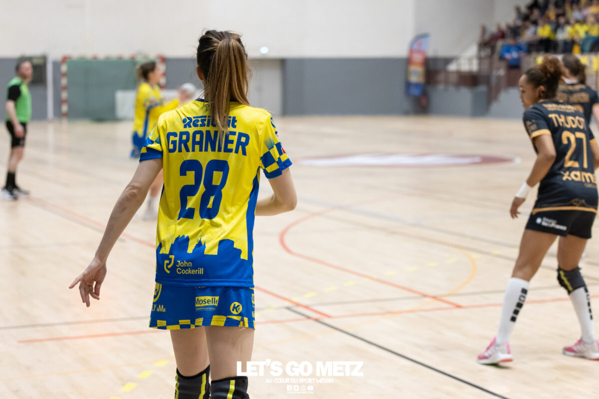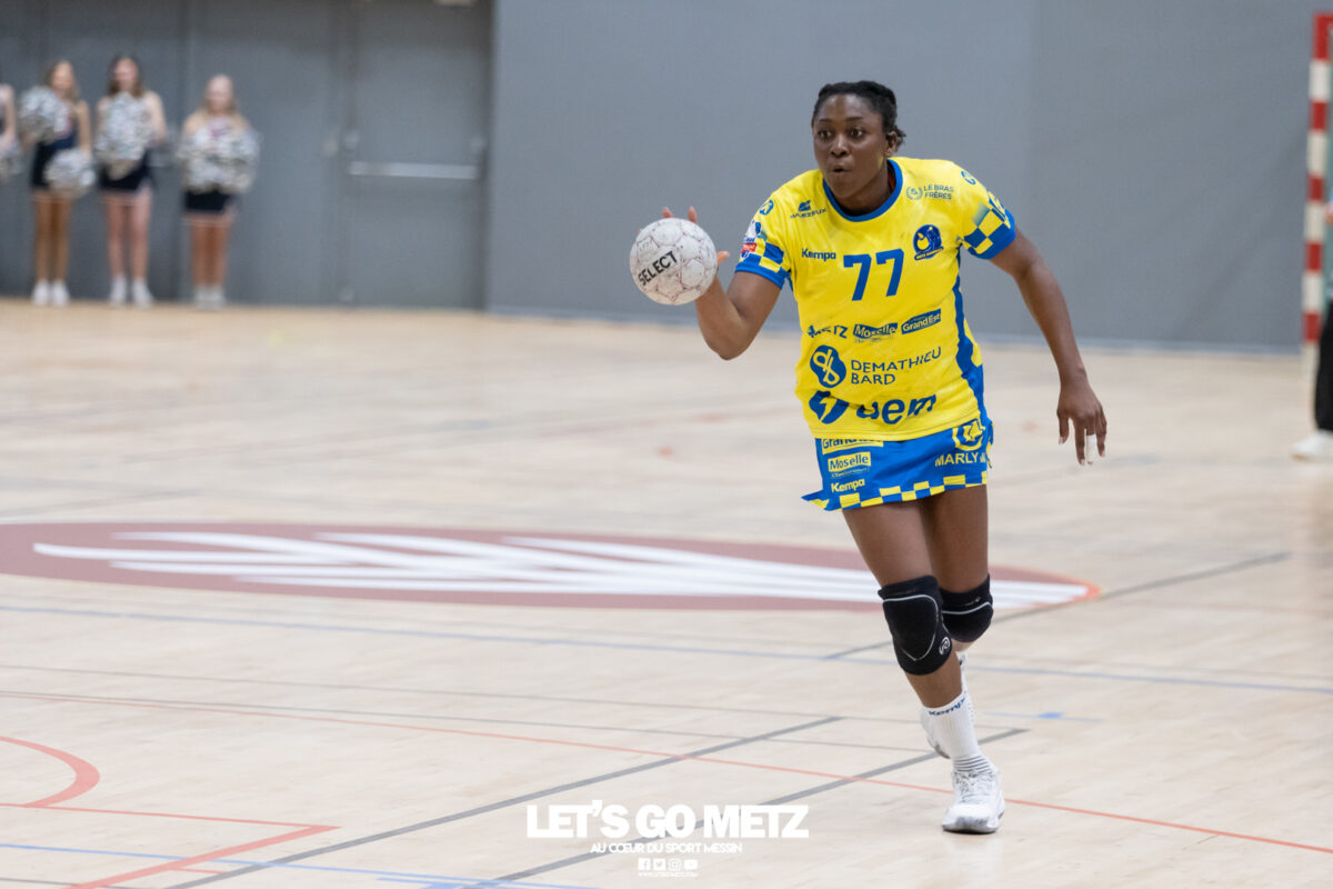 226 Ce samedi, Metz Handball s’est imposé face à Paris 92 et disputera sa cinquième finale de Coupe de France consécutive le 24 mai prochain. Après avoir battu son grand rival brestois fin février en quarts de finale, Metz Handball est devenu le grand favori à sa succession. Statut parfaitement assumé par les Dragonnes qui n’ont laissé aucun espoir à Paris 92 en s’imposant de dix-huit buts. Une victoire qui permet au club lorrain de rejoindre l’Accor Arena et y disputer sa cinquième finale de rang en Coupe de France. Si face à Nice mercredi, les partenaires de Chloé Valentini avaient rendu une copie moyenne dans le jeu, cette fois, elles se sont montrées impitoyables des deux cotés du terrain pour des Parisiennes sans solutions, davantage encore que lors des deux confrontations en championnat. Tyra Axner a fait parler son bras Paris 92 a bien mené au score dans cette rencontre grâce à un but de leur meilleure réalisatrice en Ligue Butagaz Energie, Coura Kanouté. Mais, avec la prestation de l’arrière Mathilde Plotton, ce seront sans doute les seuls motifs de satisfaction des filles de Naïm Sarni tant Metz Handball se muait en rouleau compresseur tout au long de cette demi-finale. Tyra Axner, Manon Errard, Sarah Bouktit et Grâce Zaadi créaient d’entrée un écart de trois unités (4-1, 6e). Suzanne Wajoka y allait même de son doublé après une réduction du score par la capitaine des Lionnes, Barbara Moretto (6-2, 8e). Tout semblait aller pour le mieux dans le meilleur des monde pour les Jaune et Bleu mais deux buts encaissés consécutivement agaçaient Emmanuel Mayonnade qui posait un temps mort. Une mise au point rapide mais qui lançait définitivement le TGV lorrain. En effet, bien que Marie Prouvensier et Mathilde Plotton parvenaient à tromper la vigilance de Johanna Bundsen, la gardienne suédoise se montrait solide dans ses cages (11 arrêts à 50%). Cette solidité, conjuguée à la précision de Tyra Axner, Lucie Granier, Petra Vamos et Sarah Bouktit, offrait un pécule de huit buts d’avance aux Messines à la pause (19-11, 30e). Sarah Bouktit une nouvelle fois irrésistible La pivot internationale, auteure de trois buts au cours de cette première moitié de match, ne comptait pas s’arrêter en si bon chemin. C’est elle qui ouvrait les hostilités du second acte avant de donner du spectacle en enchainant les combinaisons en contre attaque avec Chloé Valentini, notamment, et en se montrant implacable au jet de sept mètres. La future joueuse de Gyôr inscrivait finalement dix buts permettant à l’écart de gonfler inexorablement. Celui-ci atteignait les vingt buts (38-18, 55e) après que Grâce Zaadi ne trouve à nouveau le chemin des filets de Paris 92. Au relais de Tyra Axner, Betchaidelle Ngombele était également une grande artisane de ce festival offensif pendant que Sabrina Novotna restait dans la lignée de sa binôme avec neuf parades. Metz Handball s’imposait finalement de dix-huit buts (41-23) et se rapprochait d’un nouveau trophée avec cette finale de Coupe de France qui se profile le 24 mai prochain à 17 h 45. Les Dragonnes seront opposées à Dijon qui a éliminé Chambray ce samedi (31-25). Lylou Borg et Manon Errard peuvent désormais partir rejoindre l’équipe de France avec sérénité pendant que les autres internationales tricolores resteront cette fois à disposition de leur coach et commenceront à préparer la double confrontation qui les attend face au FTC Budapest, les 19 et 25 avril 2026 en quarts de finale de Champions League. La galerie de la rencontre Statistiques du match Metz HandballBundsen (11 parades sur 22 tirs), Novotna (9/21)Valentini (3 buts sur 3 tirs), Axnér (5/6), Wajoka (2/2), Anne-Emmanuelle Augustine (1/1), Ngombele (4/5), Bouktit (10/11), Granier (5/5), Grandveau (1/1), Vamos (3/5), Borg (1/1), Zaadi (3/3), Errard (3/4).Exclusions : Grandveau (3e), Errard (55e) Paris 92Foggea (3 parades/35 tirs), Kabeya-Tshisola (1/10)Nooitmeer, Golvet (0 but sur 4 tirs), Kanouté (5/10), Blonbou (0/2), Plotton (8/11), Moretto (1/5), Thudot, Hansson (1/3), Maurin (1/2), Wierzba (4/8), Thobor (1/2), Prouvensier (2/4)Exclusion : Golvet (23e) Crédits photos: Matthieu Henkinet / Let’s Go Metz