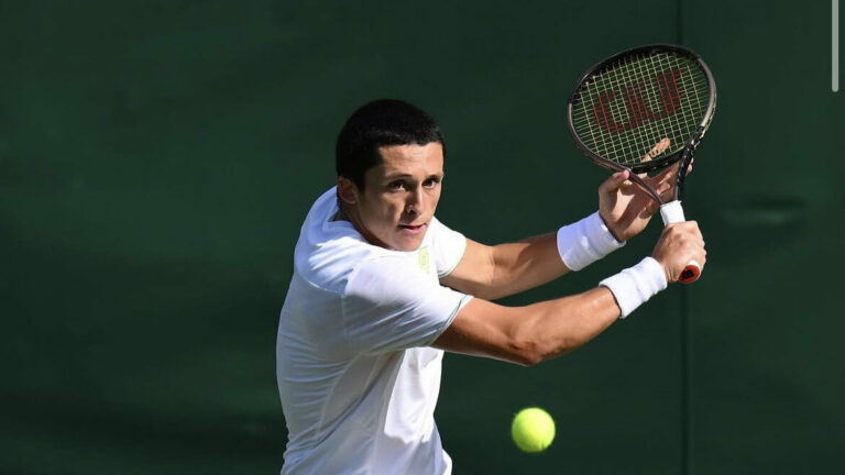 410 Chaque jour est un exploit pour Harold Mayot. Après être sorti victorieux des qualifications de Wimbledon, il remporte son premier match en tableau final face à Benjamin Bonzi et file au deuxième tour. Il n’en finit plus d’étonner ! Il aura fallu trois jours. Oui, trois jours, pour qu’Harold Mayot s’impose face à Benjamin Bonzi. Le Marlien de 21 ans signe sa première victoire dans le tableau final d’un grand chelem et rejoint le deuxième tour de Wimbledon. Sans avoir perdu le moindre set, s’il vous plaît. Il ne fallait pas être pressé pour connaître le dénouement de ce duel franco-français. Commencé tardivement lundi, le match a été interrompu par manque de lumière sur le court N°8. Alors qu’il devait logiquement reprendre le lendemain, la pluie s’est abattue sur Londres. Rien de bien étonnant en Angleterre cela dit. Mayot en pleine confiance Alors que la confiance battait son plein, il était tout de même normal d’imaginer le stress et l’appréhension qui envahissaient alors Harold Mayot. Mais que nenni. Avant l’interruption, Harold Mayot récitait son tennis. Afin de lancer les hostilités, le joueur tout droit sorti des qualifications place un ace. Le premier d’une longue série. Il en a fait quinze. Dans un premier set maîtrisé de bout en bout par Harold Mayot, Benjamin Bonzi a souffert. Non pas à cause d’une méforme, mais bien parce que le Messin était injouable ! Quasiment tout lui réussissait, les services, les amortis, les smashs… Si le 94ème joueur mondial a sauvé deux balles de break dans le quatrième jeu, Harold Mayot n’en aura eu besoin que d’une dans le sixième jeu pour prendre les devants. (2-2 ; 4-2 ; 6-3) Mayot solide, Bonzi fébrile Bis répétita dans la seconde manche. Malgré de nombreuses fautes directes, Mayot restait bien concentré et assurait ses jeux de services. Malgré un sursaut d’orgueil de Bonzi qui compliquait la tâche à l’ancien N°1 mondial junior, rien n’y faisait. Mayot break sur sa première occasion. Alors que la fin du second set approchait à grands pas, la nuit tombait sur les courts de Wimbledon. Et le lendemain, la météo était capricieuse. Mercredi et enfin de retour sur le court. Harold Mayot menait 6-3 ; 5-3. Après un premier jeu difficile, le 181è joueur à l’ATP est revenu dans sa partie. Jamais facile de connaître une si longue interruption. Cependant, les deux jours de repos ont permis à Benjamin Bonzi de se remettre les idées en place. Bien plus agressif, il parvient à obtenir deux balles de break, qui seront effacées par Mayot. Le jeune Messin ne parvenait pas à conclure aussi rapidement que lors du premier set. Il aura eu besoin de quatre balles de set pour remporter la seconde manche. Que ce fut dur dans cette troisième et dernière manche. Parvenu à breaker rapidement (3-1), Harold Mayot perdait son service quelques jeux plus tard. (5-5) Mais la détermination et la volonté du Marlien lui permettaient de reprendre l’avantage dans la foulée. (6-5) Dans ses derniers retranchements, il fait jeu blanc. (7-5) Après ce dernier point à 40-0, Harold Mayot laisse exploser sa joie, sa rage et sa fierté sur le court N°8 ! Au prochain tour, il sera opposé à Guido Pella. L’Argentin de 33 ans, classé 308è à l’ATP, a sorti la tête de série N°13, Borna Coric en cinq sets (3-2) Photos : Corinne Dubreuil / FFT