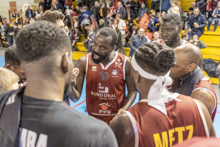 454 Ce Samedi, les Canonniers avaient un rendez vous périlleux à négocier chez le leader de leur poule de Nationale 2, le WOSB. Ce match entre premiers et troisièmes du classement était entouré depuis longtemps sur le calendrier puisque annoncé comme véritable test de cette première partie de saison… Nous avons fait le déplacement pour vous. C’est un énorme choc de cette poule D qui se profile ce Samedi. Les Canonniers de Metz qui sont sur 6 victoires d’affilée vont avoir la lourde tâche de défier le leader imperturbable de la compétition : le WOSB. Déplacement ultra important donc pour les Messins qui peuvent s’emparer ce soir du trône de leader de la poule en cas de victoire. Philippe Ory et son staff ont concocté un 5 majeur classique : A noter le retour d’Henok Affa en tant que titulaire au poste 3, alors qu’il avait manqué le dernier match face à Lons-le-Saunier en raison d’une blessure. 1er quart-temps Le match débute sur un round d’observation dans le petit gymnase d’Otterswiller. Les deux équipes sont très brouillonnes, seul Michel Nsimba parvient à scorer dans ce début de partie avec 4 points. Le jeu messin peine à se mettre en place chez le leader de la poule WOSB qui mène 10-4 à 4:30 de la fin du quart-temps. Philippe Ory fait alors entrer Rabbi Gabriel Kosi Kidi. Cela ne calme pas les ardeurs des alsaciens, adroits à 3 points. Le coach messin doit prendre temps-mort pour stopper l’hémorragie. 15-4, WOSB. Etienne Ory sort alors du banc pour remettre de l’ordre dans la maison grenat. Rien ne semble fonctionner pour Metz mais dans la dernière minute du quart temps, Matthew Lee lance son match en inscrivant 5 points de suite, dont un and one au forceps. WOSB ajoute finalement 2 points sur la ligne des lancers francs et conclut ce premier acte avec une avance de 19-9. Metz devra faire bien mieux pour espérer remporter la partie. Fin du 1er quart temps : WOSB 19-9 Metz 2ème quart-temps Etienne Ory donne un peu d’allant aux Canonniers avec un 3 points à 45°. Sur la défense qui suit, Gabriel Kosi Kidi fait parler ses longs segments avec un contre spectaculaire sur un shoot à 3 points. Matthew Lee inscrit un and one sur la contre-attaque. Le sursaut messin devient total quand Mamedy Diawara inscrit 2 nouveaux points d’une claquette, poussant WOSB à prendre temps-mort. 21-17, WOSB. Le momentum a clairement changé de camp et Metz a enfin lancé son match. Etienne Ory vole un ballon au meneur adverse et obtient une faute anti-sportive. Après un 3 points manqué par David Sainsbury Garcia, Damien Jean-Joseph s’emploie pour aller chercher un rebond offensif au mileu des grands pour ressortir sur Patrice M’Bianda qui va inscrire 2 points en pénétration. Temps-mort WOSB qui mène 29-22 à 4:47 de la mi-temps. Les alsaciens maîtrisent leur basket et contiennent les intentions des Canonniers pour prendre une avance de 11 points. Metz est en difficulté mais Etienne Ory inscrit un gros shoot à 3 points pour revenir à -6 qui fait se lever le président Denis Robert de son siège. Cela reste toutefois insuffisant pour contenir l’adresse insolente du WOSB qui enquille les 3 points. Il faudra un 3 points avec la planche, plein de réussite, de Damien Jean-Jospeh pour rester en vie à la mi-temps, avec un déficit de 44-32. Mi temps : WOSB 44-32 Metz 3ème quart-temps Les messins reviennent des vestiaires avec de bonnes intentions mais ne trouvent pas la solution. Cela se traduit par une frustration vis-à-vis de corps arbitral, qui est bien hésitant il faut l’admettre. WOSB prend une avance de 19 points grâce à un and one de son meneur de jeu. C’est la débandade… Comme un symbole, le cercle se joue des deux lancers de Michel Nsimba, ne lui accordant pas la faveur de mettre deux nouveaux points pour réduire l’écart. Les alsaciens mènent toujours 53-34. Attention à ne pas lâcher complètement cette fin de rencontre, sous peine de ternir la différence de points, qui pourrait être primordiale en fin de saison. Cela ne semble pas être l’intention des Grenats. D’un dunk rageur, Michel Nsimba montre que les Canonniers ont encore envie de s’accrocher. Il inscrit ensuite deux lancers francs pour recoller à -16. 58-42, WOSB à 2:30 de la fin du quart-temps. Les alsaciens concluront finalement ce 3ème QT avec un dernier shoot à 3 points improbable pour s’octroyer une avance confortable de 20 points. Fin du 3ème quart temps : WOSB 65-45 Metz 4ème quart-temps Malgré ce déficit pratiquement irrémédiable, le banc messin continue d’encourager les siens à ne rien lâcher dans ce match. Le WOSB garde sa main mise sur la partie avec une avance qui oscille autour de la vingtaine de points. On a l’impression que rien ne réussit aux Canonniers, pas même les lancers francs de joueurs comme Matthew Lee et Patrice Mbianda, pourtant habituellement habiles dans l’exercice. Philippe Ory prend temps-mort pour tenter de donner un dernier souffle à son groupe à 7 minutes de la fin du match. 69-48, WOSB. Les locaux continuent de dérouler leur basket et font parler une nouvelle fois leur adresse extérieure pour prendre 30 points d’avance à 5 minutes du terme… Ils ne seront plus rattrapés. Dure soirée à oublier pour les Canonniers qui s’inclineront finalement très lourdement sur le parquet du leader de la poule. Fin du match : WOSB 91-63 Metz Il aura manqué beaucoup de choses aux Grenats ce soir. Les visages sont défaits mais ils tenteront de se relancer dès samedi prochain avec la réception de Cambrai. Les stats Nsimba 15pts, Lee 13pts, Affa 9pts, Ory 7pts, Gabriel Kosi Kidi 7pts, Diawara 5pts, Doucouré 2pts, Sainsbury-Garcia 2pts, Jean-Joseph 2pts, M’Bianda 1pt Les mots de Michel Nsimba A l’issue de la rencontre, Michel Nsimba a accepté de répondre à nos questions. LGM : Michel, que vous a-t-il manqué ce soir ? MN : Sur ce match, on n’a pas su répondre collectivement. On est tom